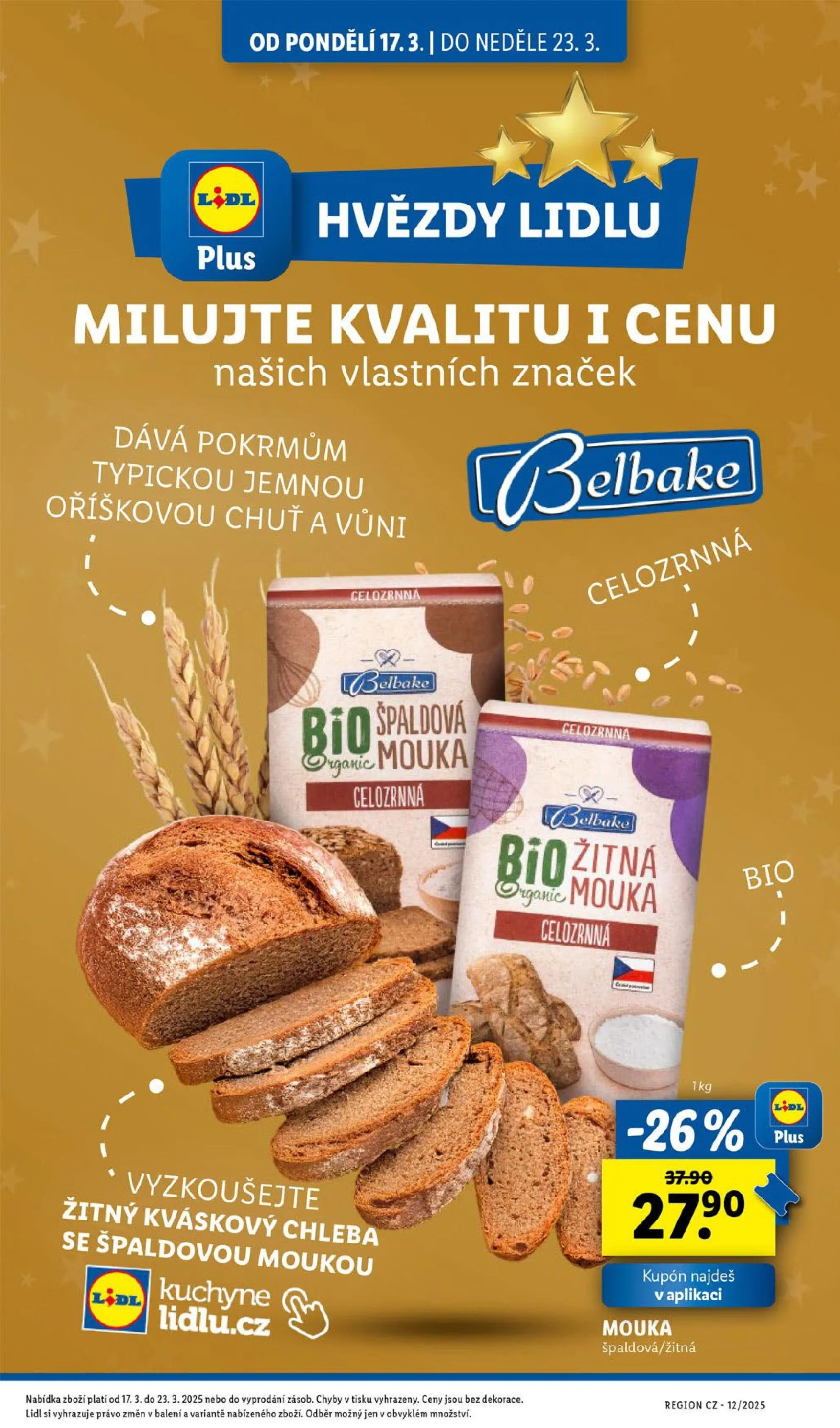 Od pondělí 17.3. do neděle 23.3. se v Lidlu koná akce "Hvězdy Lidlu", kde můžete objevit kvalitní produkty za skvělé ceny. V nabídce najdete mouku špaldovou a žitnou, která dodává pokrmům jemnou oříškovou chuť a vůni. Nezapomeňte vyzkoušet žitný kváskový chleba se špaldovou moukou. Sleva až -26% platí do vyprodání zásob. Kupón na slevu najdete v aplikaci. Těšíme se na vaši návštěvu!