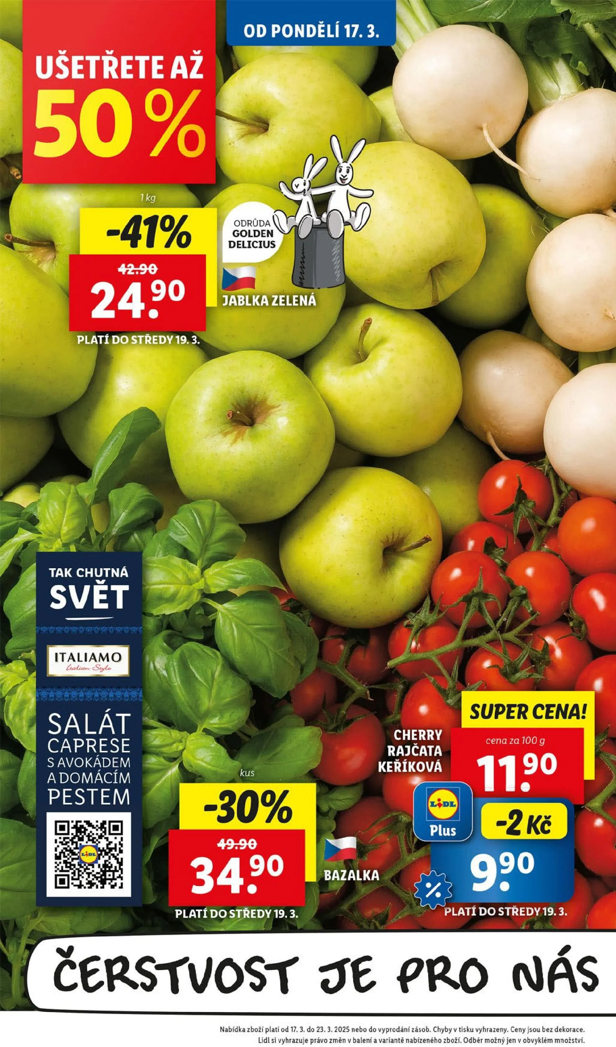 Od pondělí 17.3. můžete v Lidlu ušetřit až 50%! V nabídce najdete šťavnatá jablka odrůdy Golden Delicious a také čerstvá zelená jablka. Akce platí do středy 19.3.
