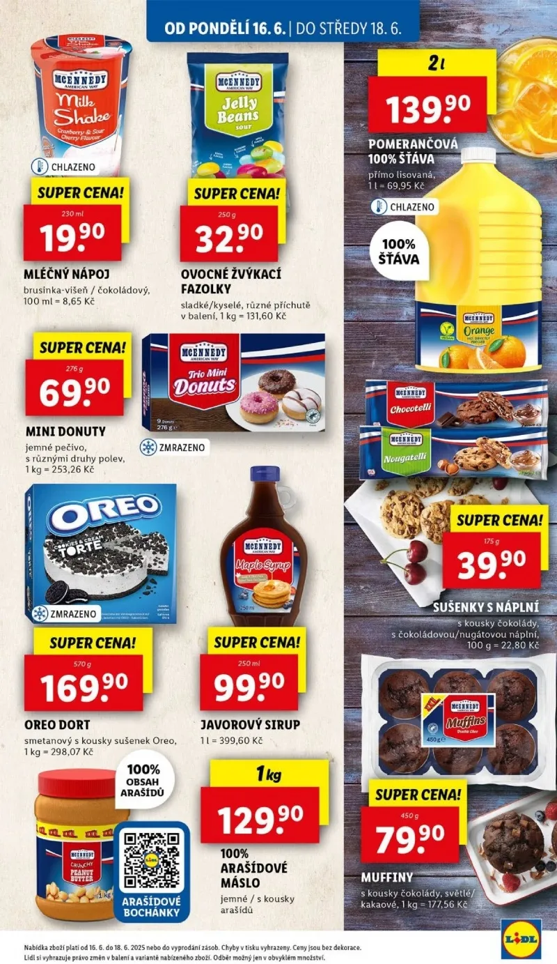 Od pondělí 16.6. do středy 18.6. si nenechte ujít skvělé nabídky v obchodě Lidl! V letáku najdete chlazené mléčné nápoje s příchutí brusinka-višeň nebo čokoládový za super cenu 8,65 Kč za 100 ml. Dále nabízíme mini donuty a ovocné žvýkací fazolky v různých příchutích, které potěší každého milovníka sladkostí.