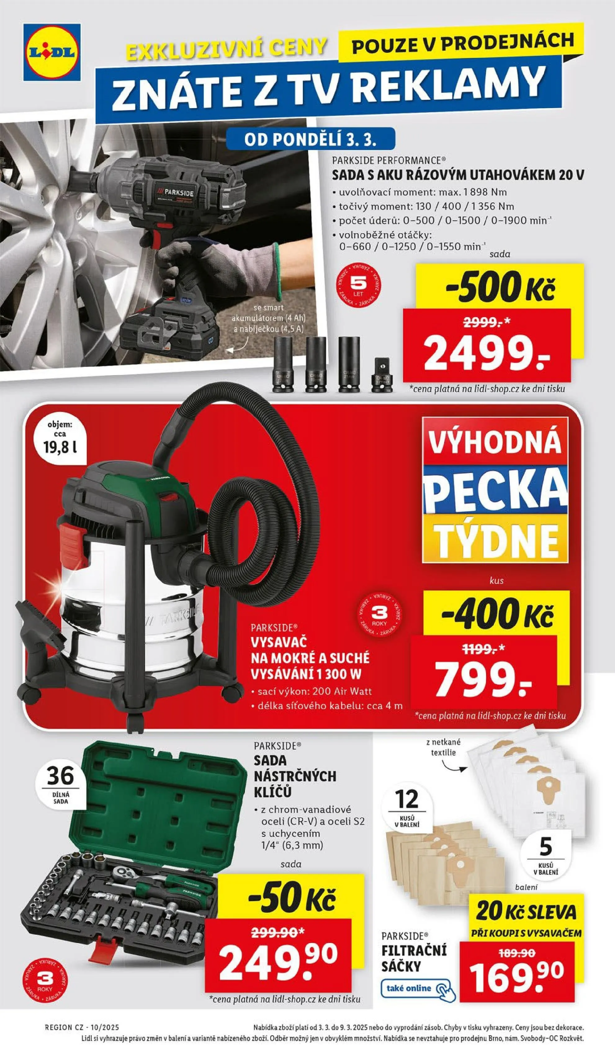 V letáku obchodu Lidl najdete skvělé produkty, které potěší každého kutila a domácího majitele. Od pondělí 3. března si můžete pořídit sadu s aku rázovým utahovákem Parkside Performance, která nabízí maximální uvolňovací moment 1 898 Nm a točivý moment až 1 356 Nm. Tato sada je nyní za zvýhodněnou cenu 2 439 Kč.