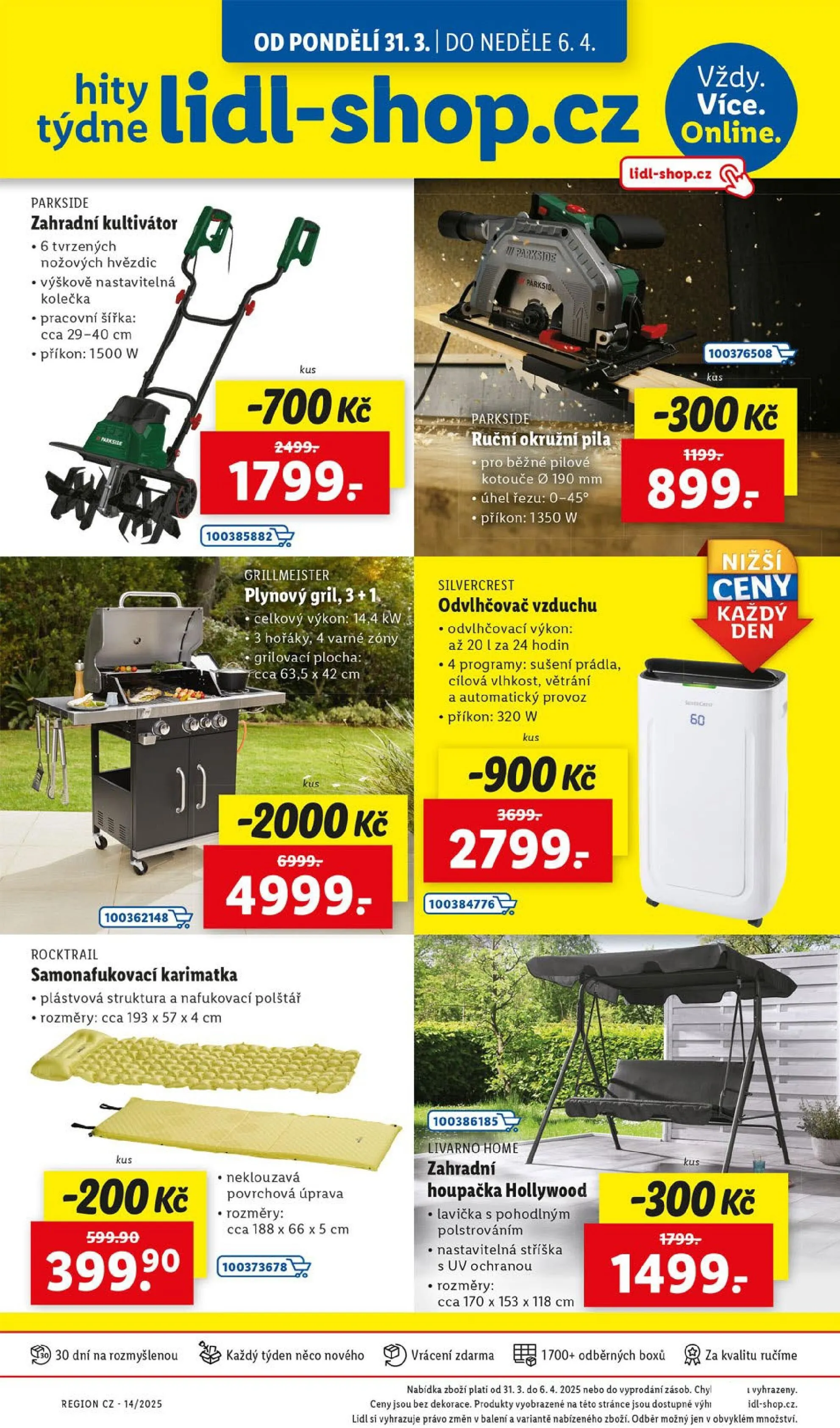 Mezi hlavními lákadly je zahradní kultivátor Parkside s 6 tvrzenými nožovými hvězdicemi a výškově nastavitelnými kolečky, ideální pro údržbu vaší zahrady. Dále si můžete pořídit plynový gril Grillmeister s výkonem 14,4 kW a velkou grilovací plochou.
