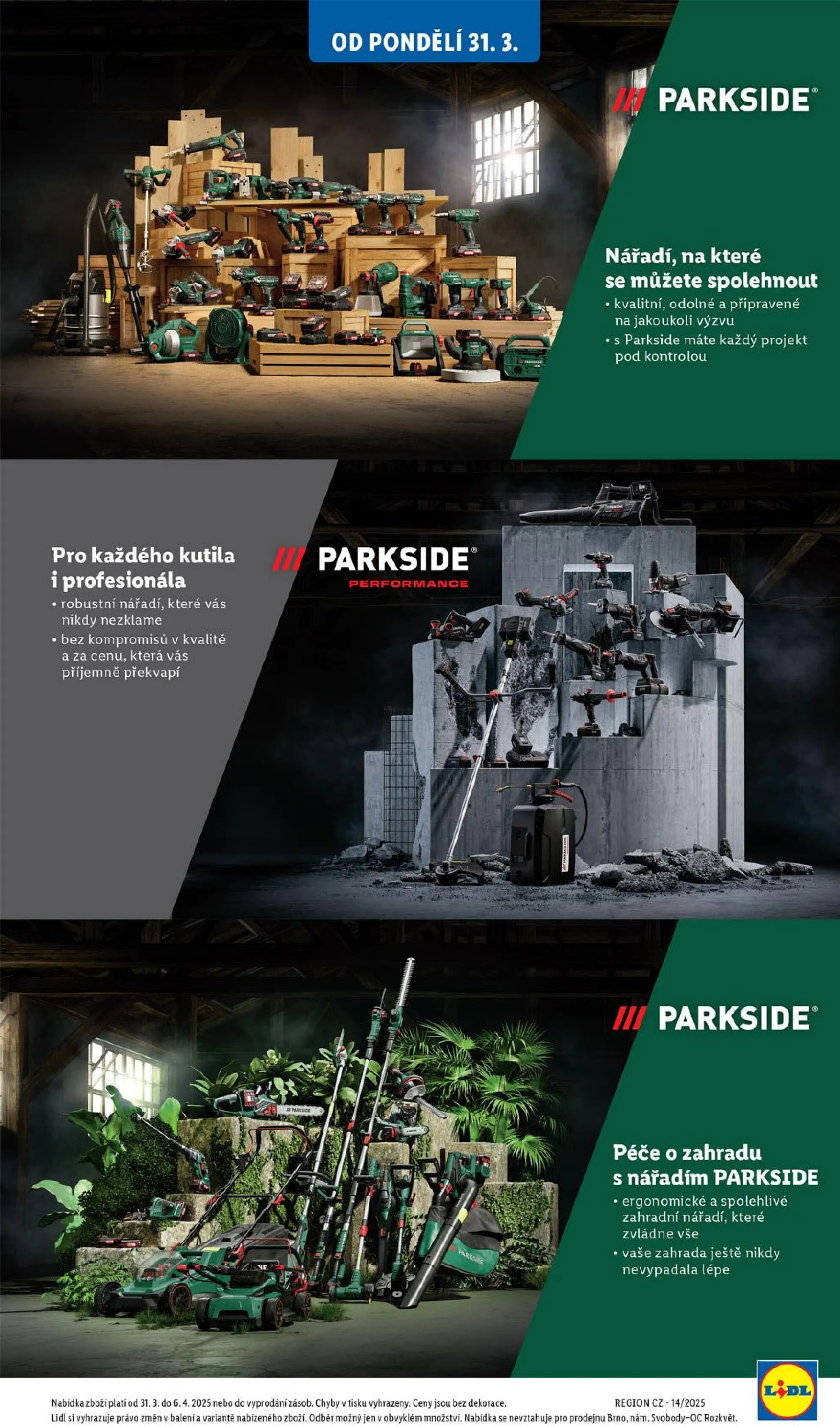 Od pondělí 31.3. přichází do obchodu Lidl nabídka produktů značky Parkside, která potěší každého kutila i profesionála. Nabízíme robustní nářadí, které vás nikdy nezklame, a to bez kompromisů v kvalitě a za příjemné ceny.