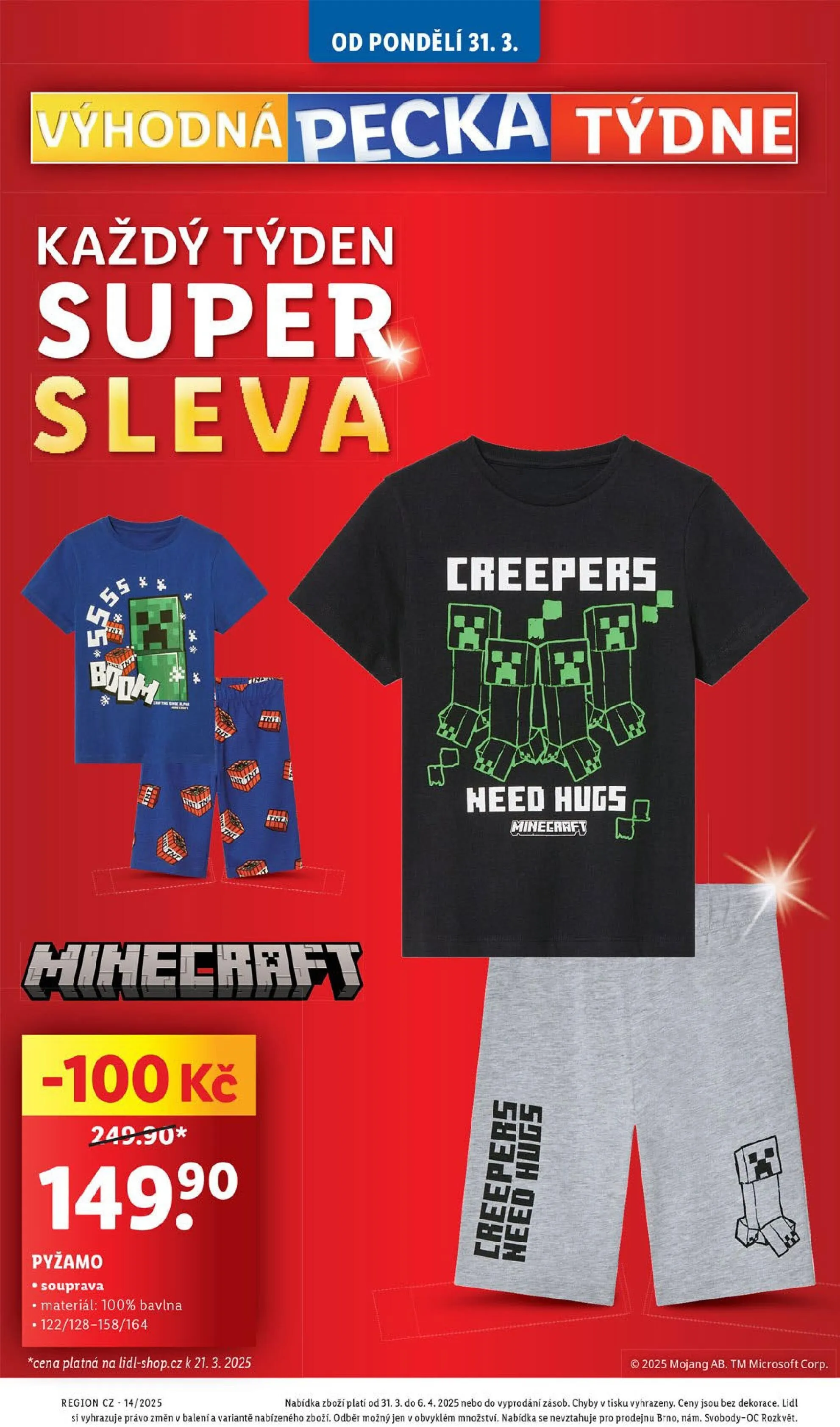 Od pondělí 31. března 2025 přichází Lidl s atraktivní nabídkou! Každý týden můžete využít super slevy, včetně pyžama soupravy vyrobené ze 100% bavlny. K dispozici jsou velikosti od 122/128 až po 158/164. Sleva 100 Kč platí na vybrané produkty. Nabídka zboží je platná od 31. března do 6. dubna 2025 nebo do vyprodání zásob. Nezapomeňte, že ceny jsou bez dekorace a Lidl si vyhrazuje právo na změny v balení a variantách nabízeného zboží. Odběr je možný pouze v obvyklém množství. Těšíme se na vaši návštěvu!