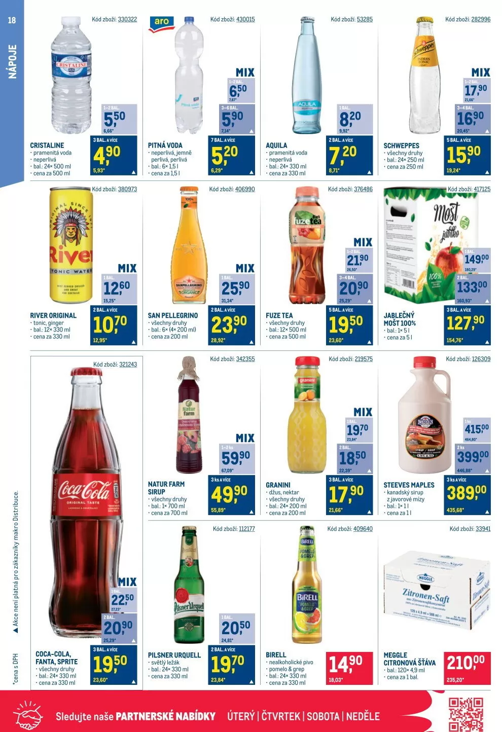 V letáku obchodu Makro najdete širokou nabídku nápojů a potravin.
