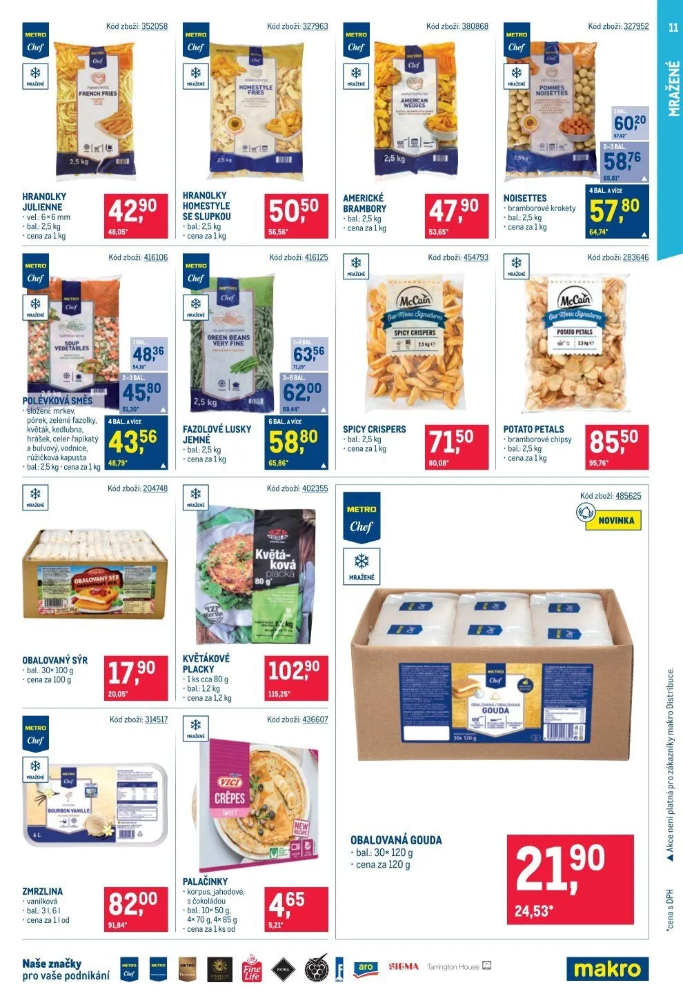 Mezi oblíbené položky patří hranolky Julienne o velikosti 6 mm, balení 25 kg, a obalovaný sýr v 100 g balení.