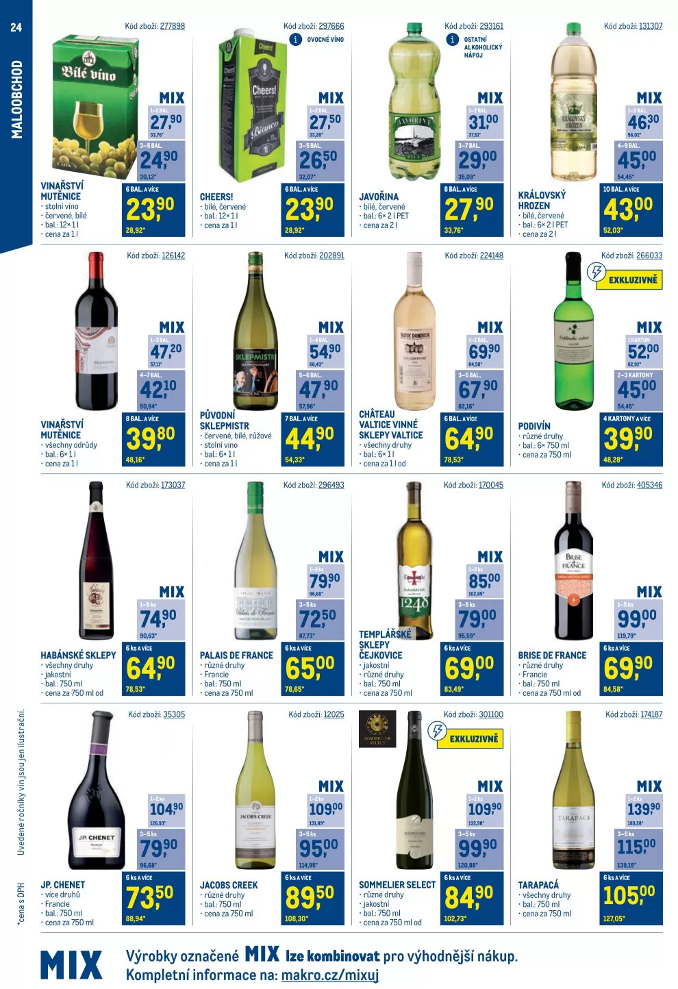 V letáku obchodu Makro najdete širokou nabídku vín z různých vinařství. Nabízíme stolní vína z Vinařství Mutěnice, a to jak červená, tak bílá, s cenou za 1 litr. Dále máme vína od Habánských sklepů, která jsou jakostní a balená v 750 ml lahvích.