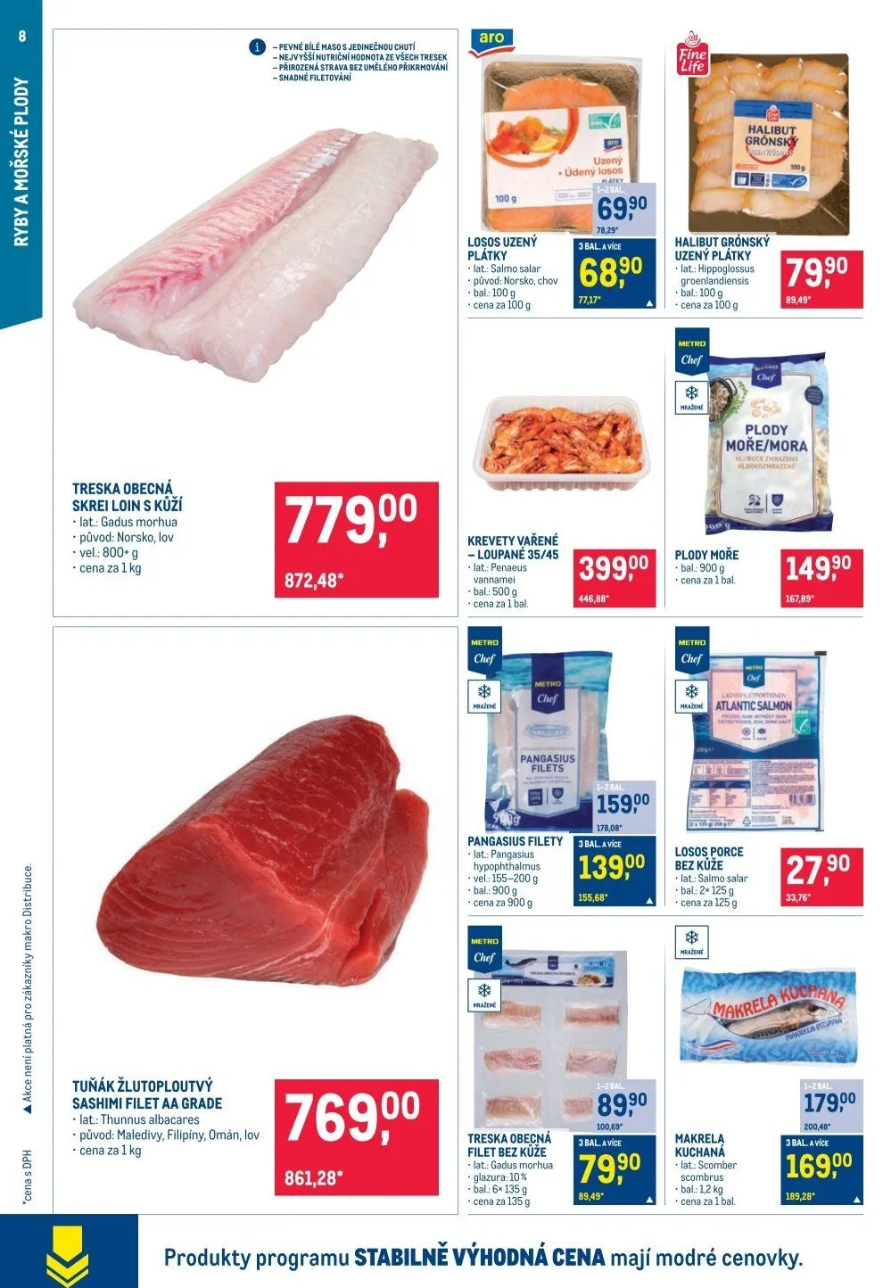 Pro milovníky čerstvých ryb nabízíme skrei loin tresky obecné z Norska za 799,90 Kč za 1 kg a tuňáka žlutoploutvého sashimi filet za 399,90 Kč za 1 kg.