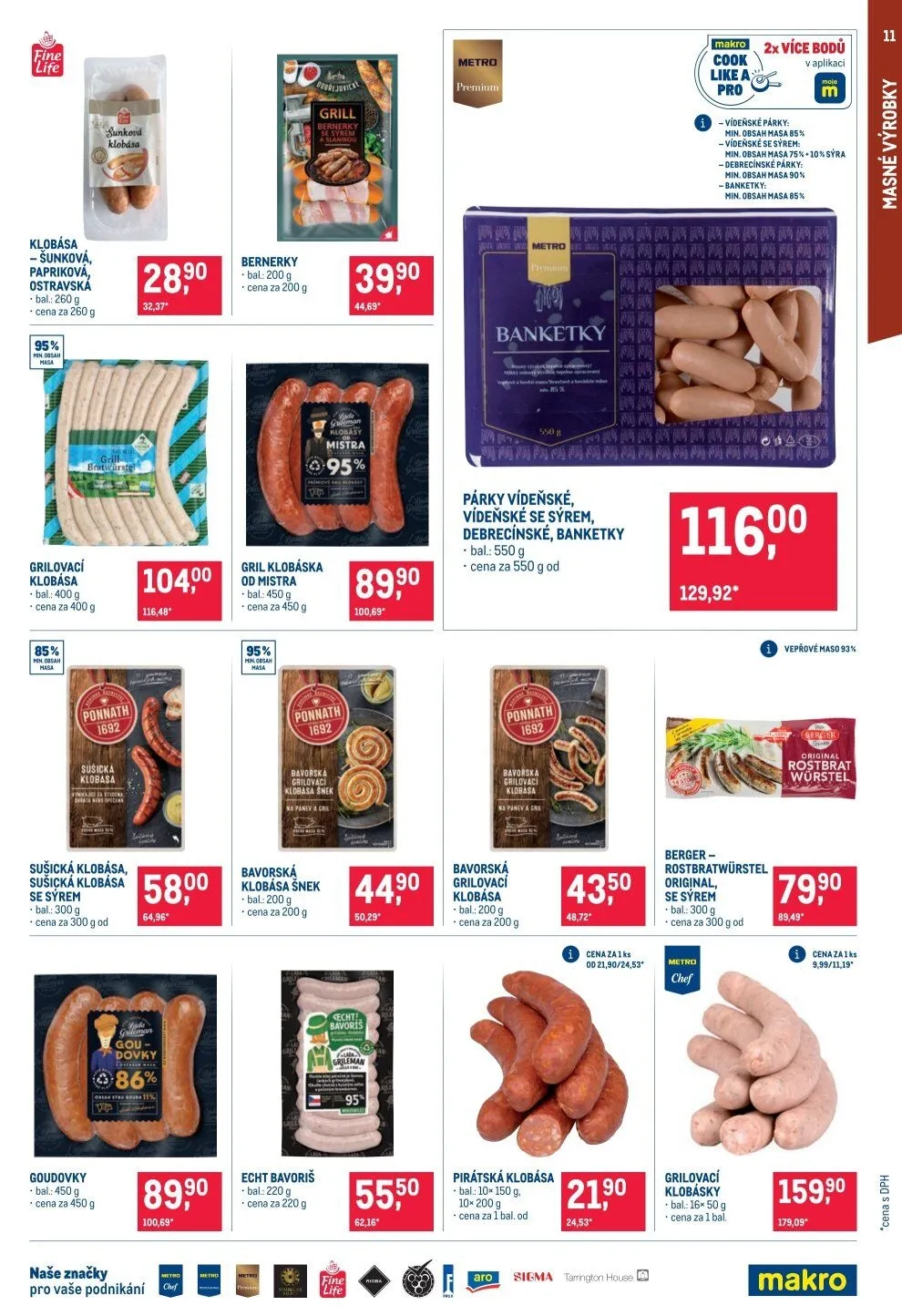 V letáku obchodu Makro najdete širokou nabídku klobás a párků.