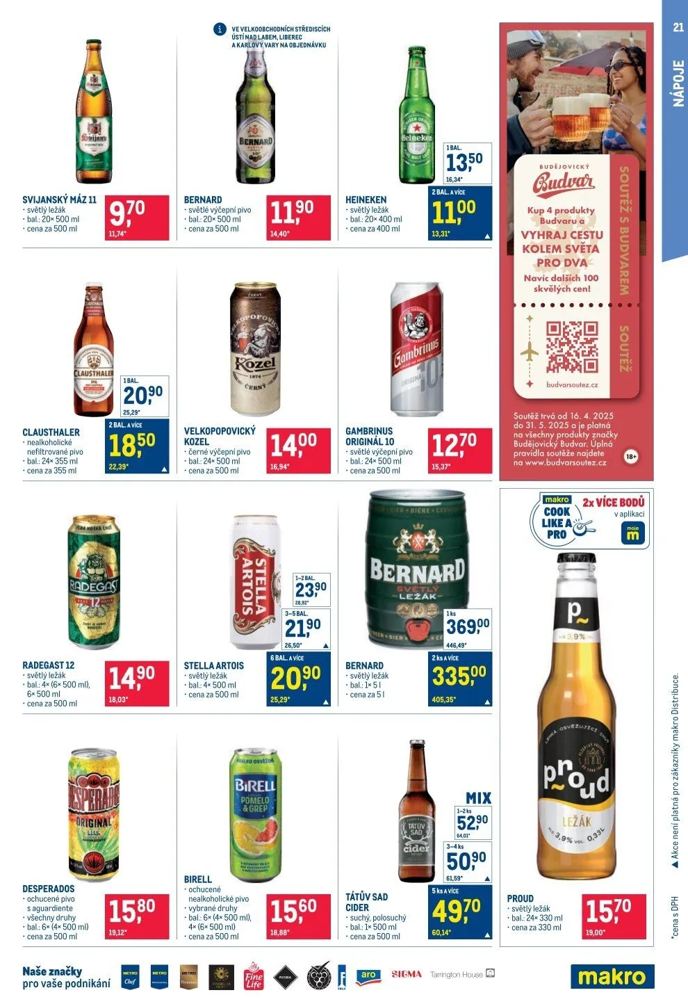 V letáku obchodu Makro najdete širokou nabídku piv a nealkoholických nápojů.