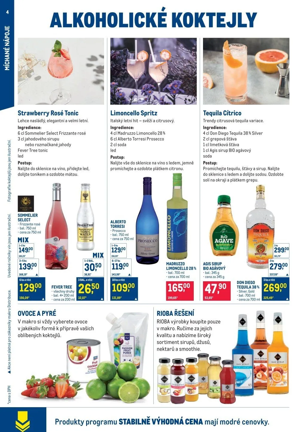 V Makro si vždy vyberete ovoce v jakékoliv formě k přípravě vašich oblíbených koktejlů. Rioba výrobky koupíte pouze v Makro. Ručíme za jejich kvalitu a nabízíme široký sortiment sirupů, džusů, nektarů a smoothie. Produkty programu stabilní výhodná cena mají modré cenovky.