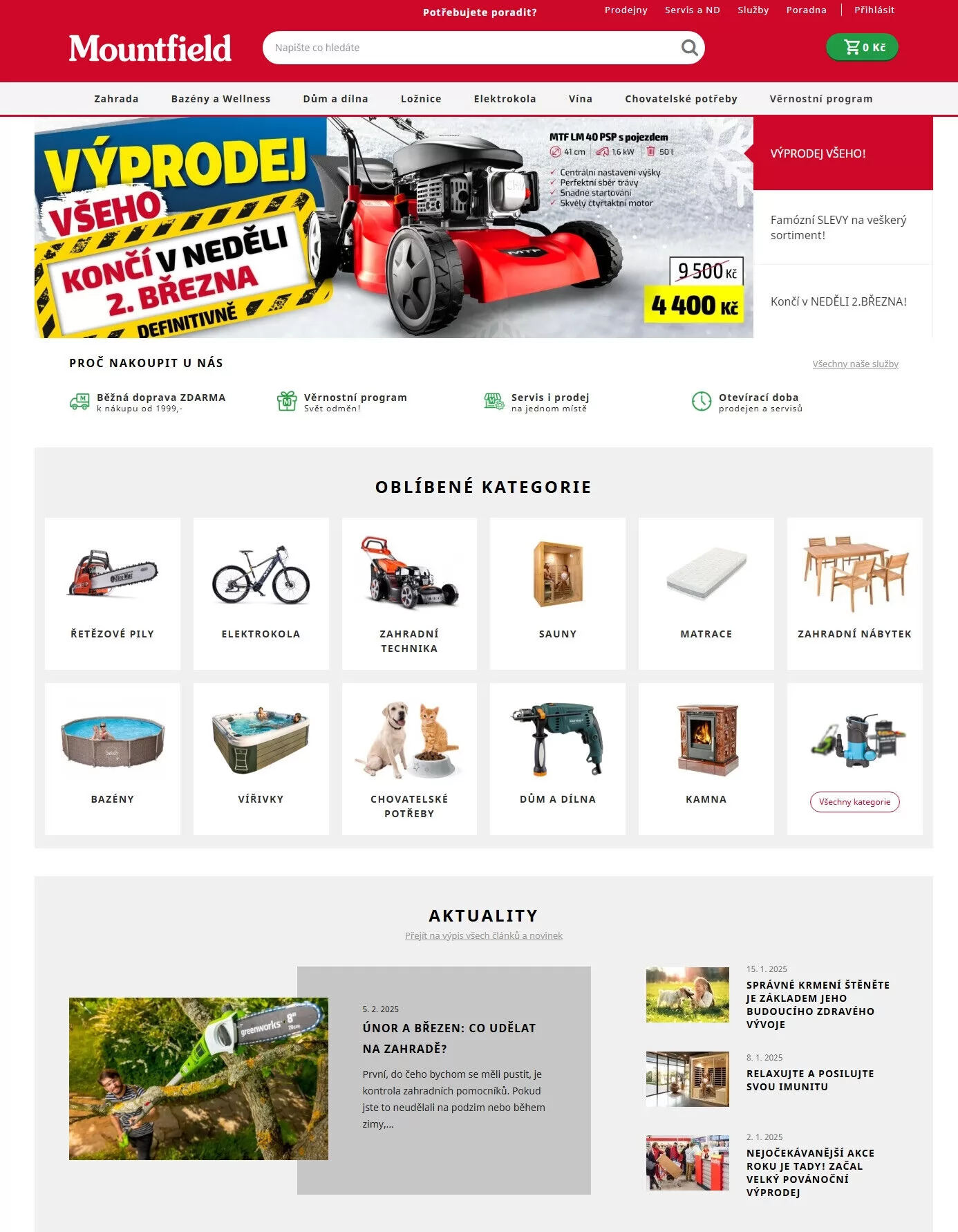 V letáku obchodu Mountfield najdete širokou nabídku produktů pro zahradu, dům a dílnu.