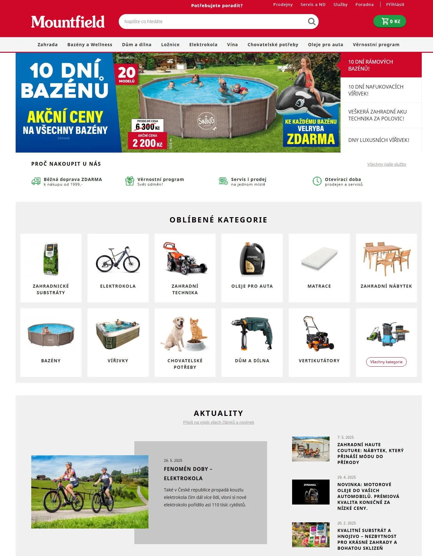 V letáku obchodu Mountfield najdete širokou nabídku produktů pro vaši zahradu, dům a volný čas. Nabízíme akční ceny na všechny bazény, včetně rámových a nafukovacích variant. Nezapomeňte využít naši nabídku dopravy zdarma ke každému bazénu.