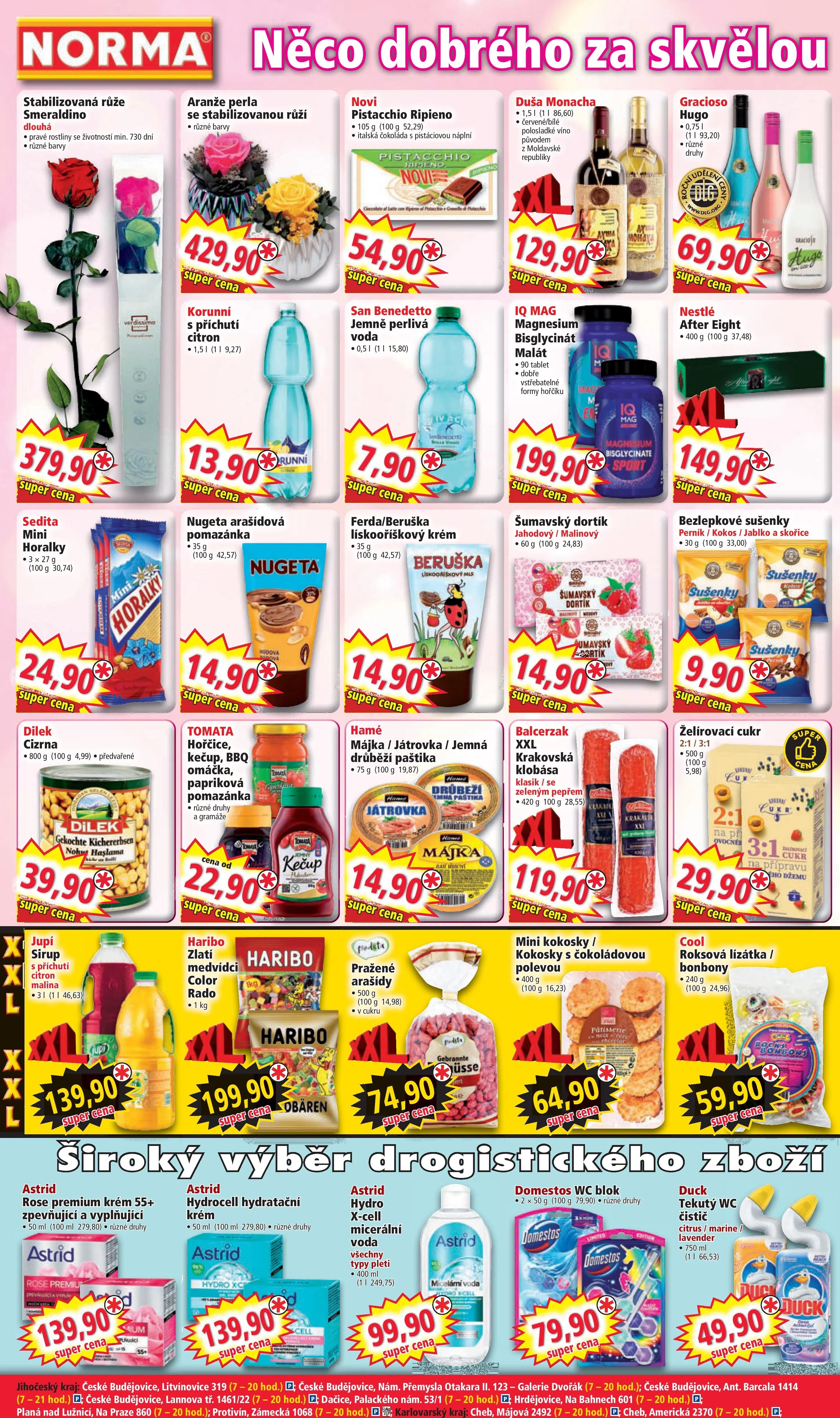 V letáku obchodu Norma najdete širokou nabídku skvělých produktů za výhodné ceny. Mezi nimi se objevují stabilizované rüie, lahodné pomazánky jako nugeta arašídová a papriková pomazánka. Nechybí ani oblíbené sladkosti, jako jsou Haribo medvídci a bezlepkové sušenky s jablkem. Pro milovníky zdravého životního stylu je k dispozici cizrna a magnesium bisglycinát.