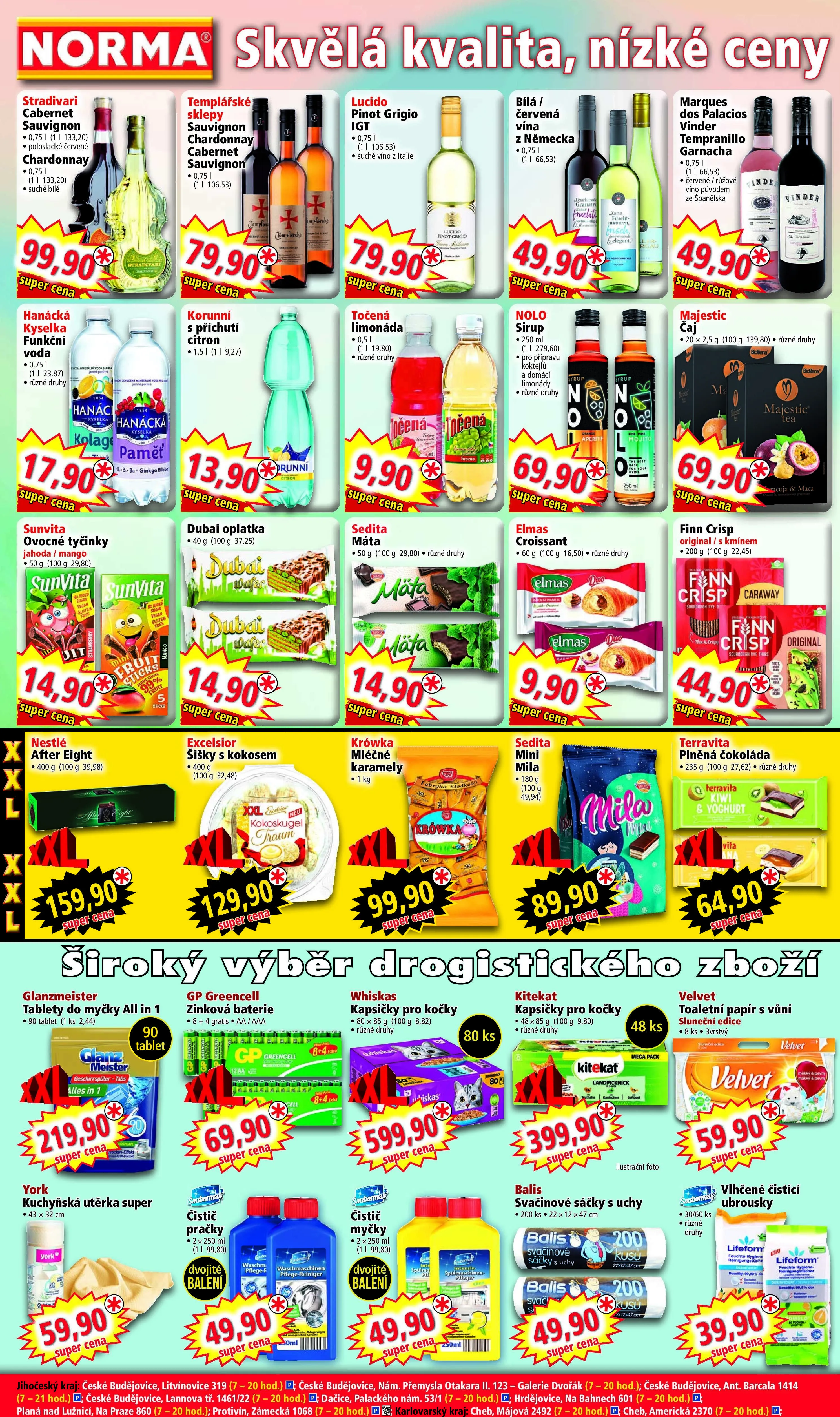 V letáku obchodu Norma najdete širokou nabídku kvalitních produktů za skvělé ceny. Mezi nimi se objevují oblíbené položky jako Hanácká kyselka, ovocné tyčinky Sunvita a lahodné After Eight od Nestlé. Nezapomeňte také na točenou limonádu Ronni a kokosové šišky Excelsior.