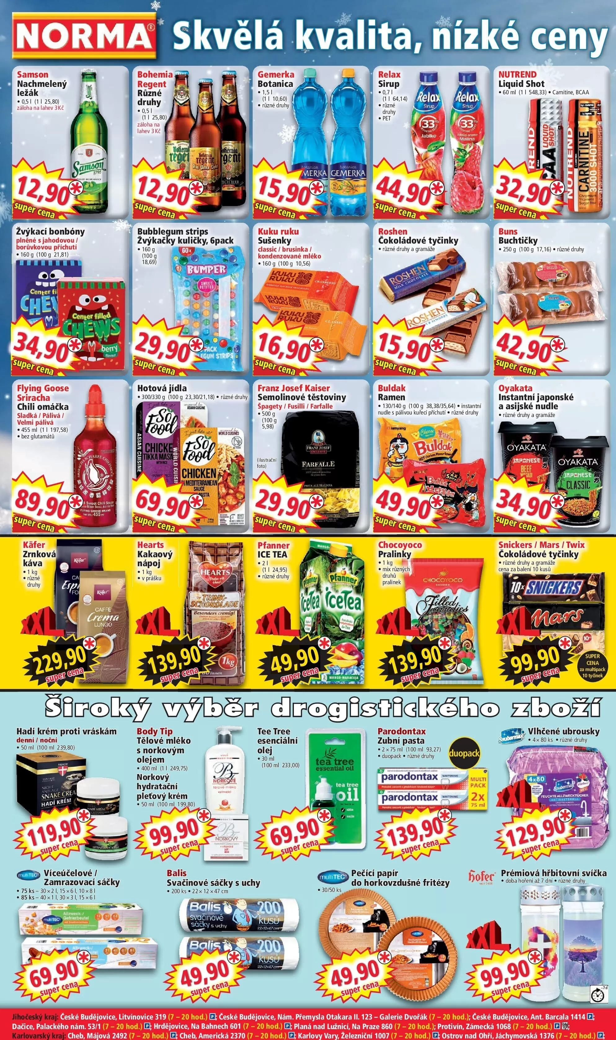 V letáku obchodu Norma najdete širokou nabídku kvalitních produktů za skvělé ceny. Mezi lákavé položky patří žvýkací bonbóny, sriracha chili omáčka, zrnková káva a krém proti vráskám. Nezapomeňte také na zamrazovací sáčky a různé druhy sušenek.