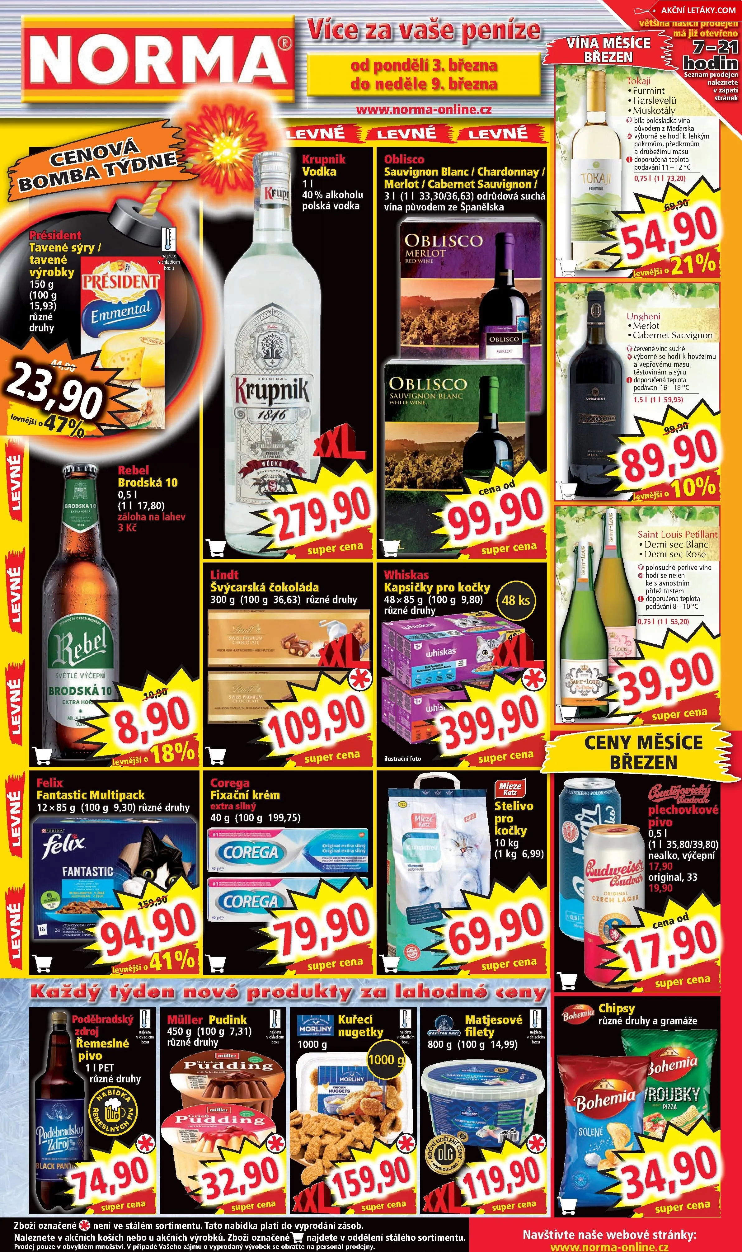 Mezi cenovými bombami týdne najdete tavené sýry Frésident, polskou vodku Krupnik, švýcarskou čokoládu Lindt a vína jako Sauvignon Blanc a Merlot z oblasti Španělska.