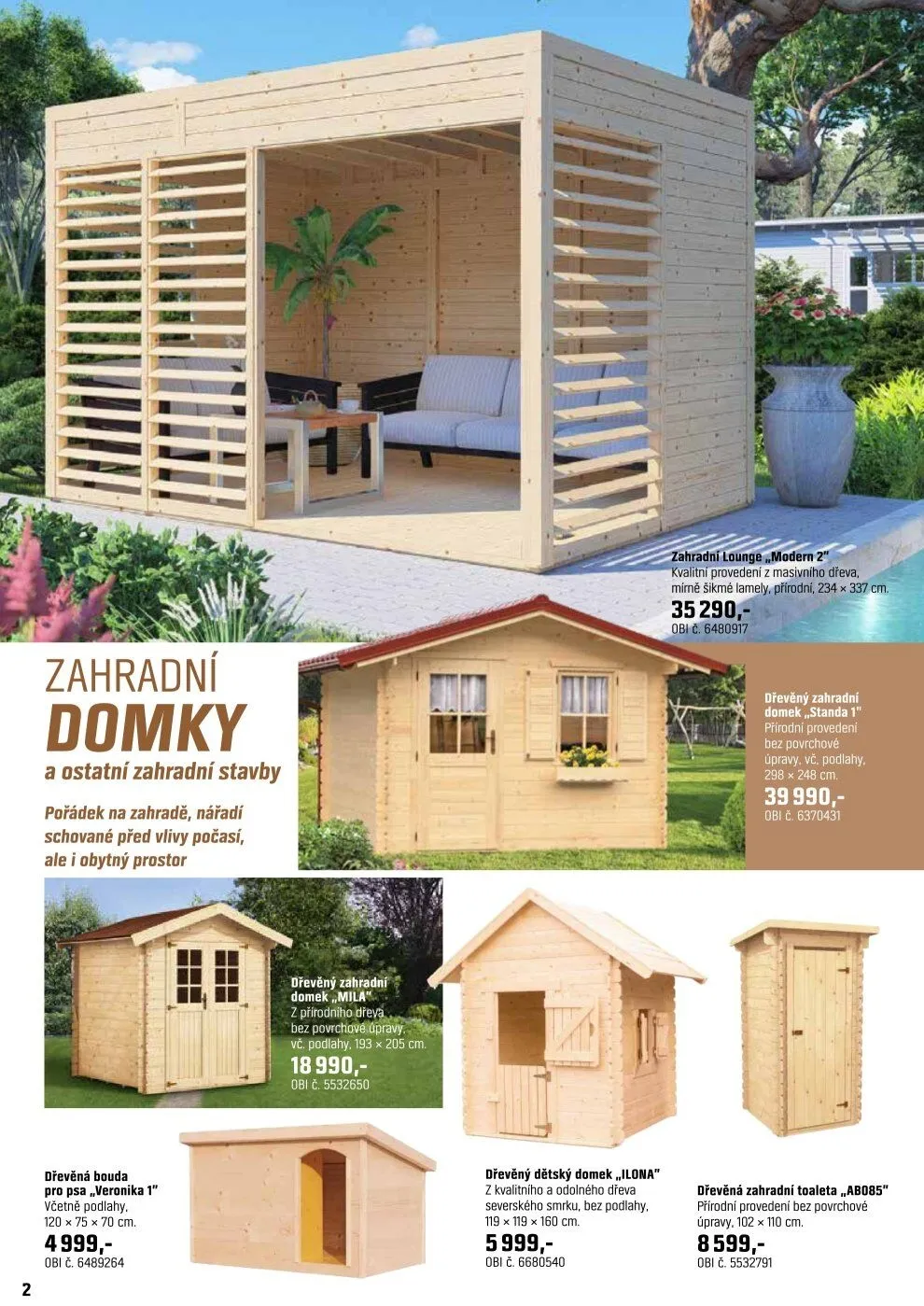 V letáku obchodu OBI najdete širokou nabídku zahradních domků a dalších zahradních staveb, které vám pomohou udržet pořádek na zahradě a chránit nářadí před nepříznivými vlivy počasí.