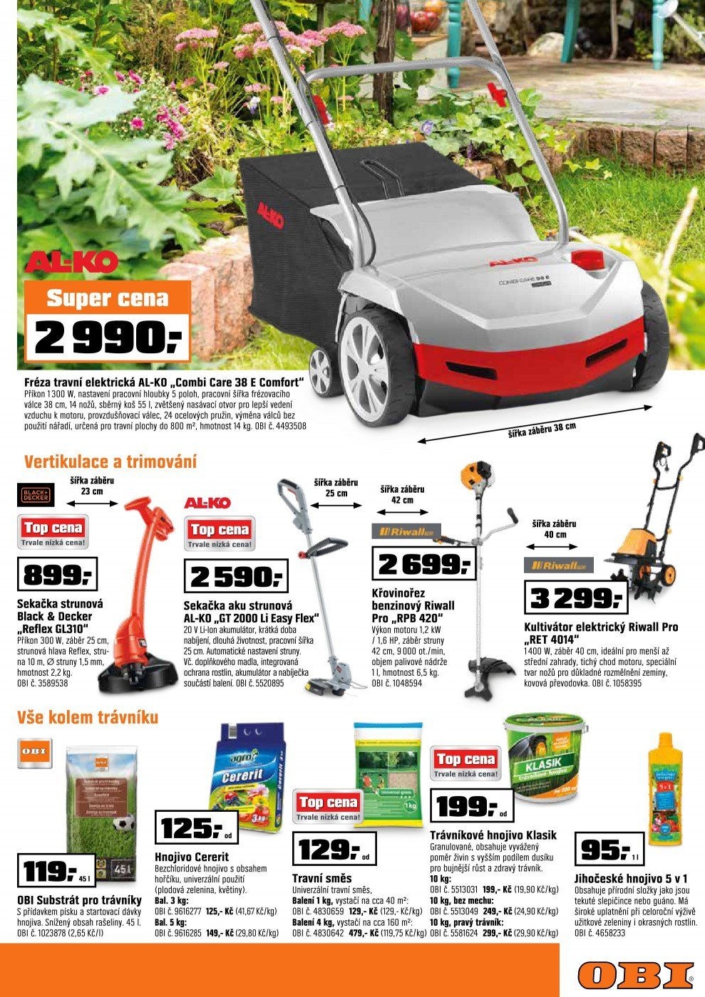 použiti nářadí. určená pro travní plochy do boo m?. hmotnost 14 kg. obi t. 4493508