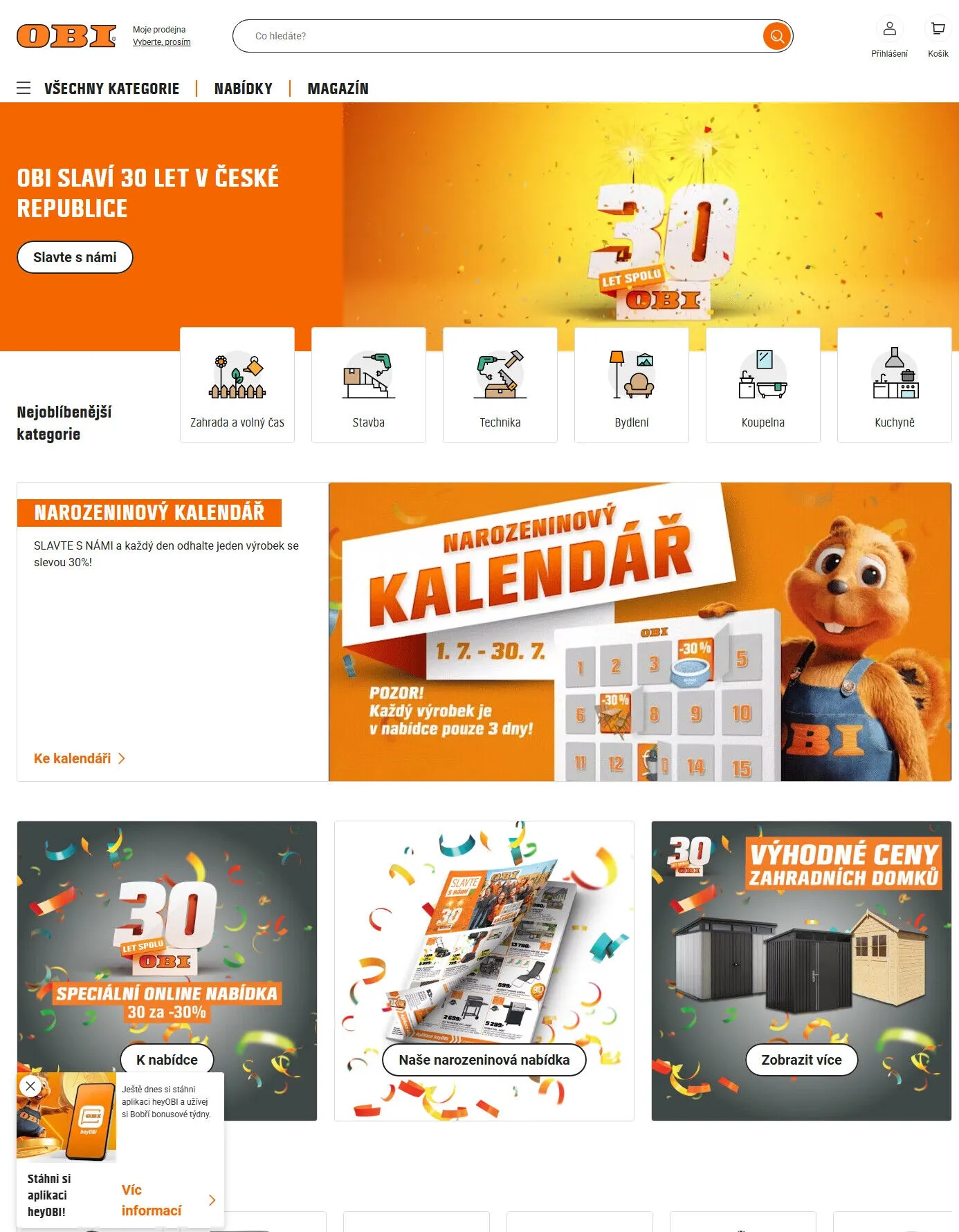 V obchodě OBI slavíme 30 let v České republice a zveme vás k oslavě! Každý den odhalujeme jeden výrobek se slevou 30% v našem narozeninovém kalendáři. Nezapomeňte, že každý výrobek je v nabídce pouze 3 dny!