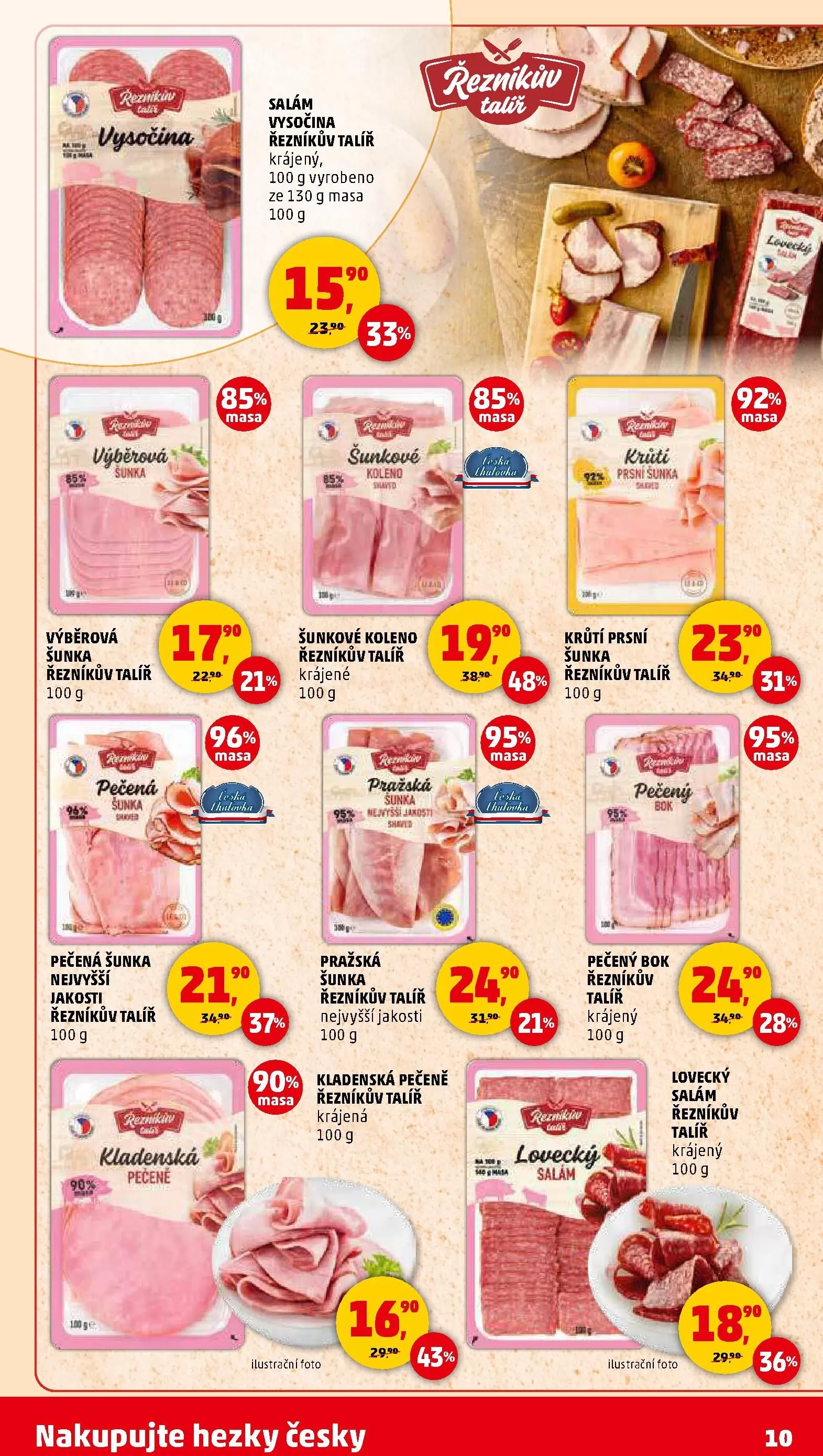 V letáku obchodu Penny Market najdete široký výběr kvalitních masných výrobků. Nabízíme pečenou šunku nejvyšší jakosti, která je k dostání v řezníkově talíři po 100 g. Dále si můžete vybrat z krájeného salámu Vysočina, vyrobeného ze 130 g masa na 100 g produktu. Nechybí ani šunkové koleno a pražská šunka, obě v řezníkově talíři po 100 g. Pro milovníky drůbeže máme k dispozici krůtí prsní šunku a pečený bok, také v krájené formě. A pokud máte rádi salámy, doporučujeme lovecký salám, který je rovněž k dostání v 100 g balení. Nakupujte hezky česky a vychutnejte si kvalitní produkty z našeho letáku!