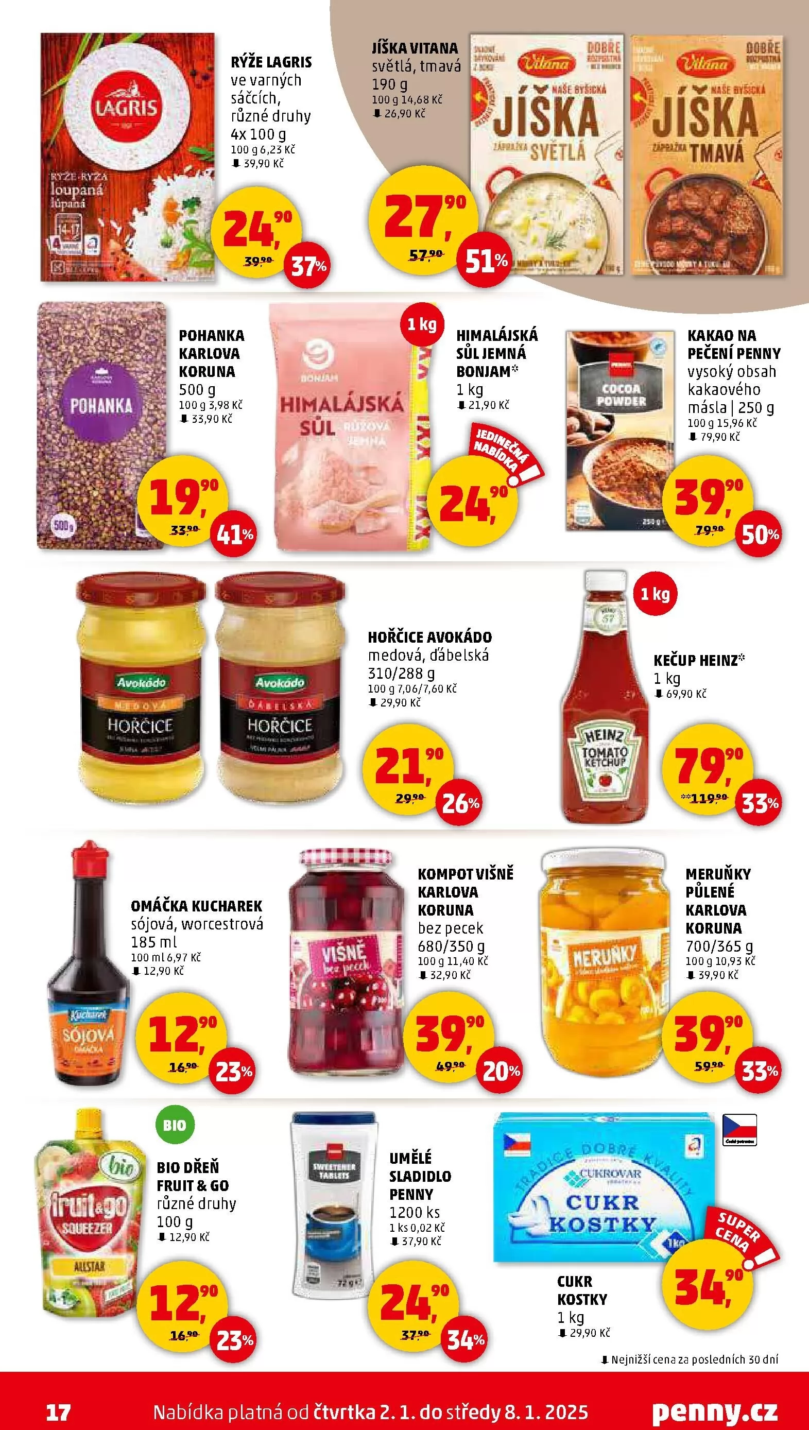 Akce platí od čtvrtka 2.1. do středy 8.1.2025. Navštivte penny.cz pro více informací a výhodné nákupy!