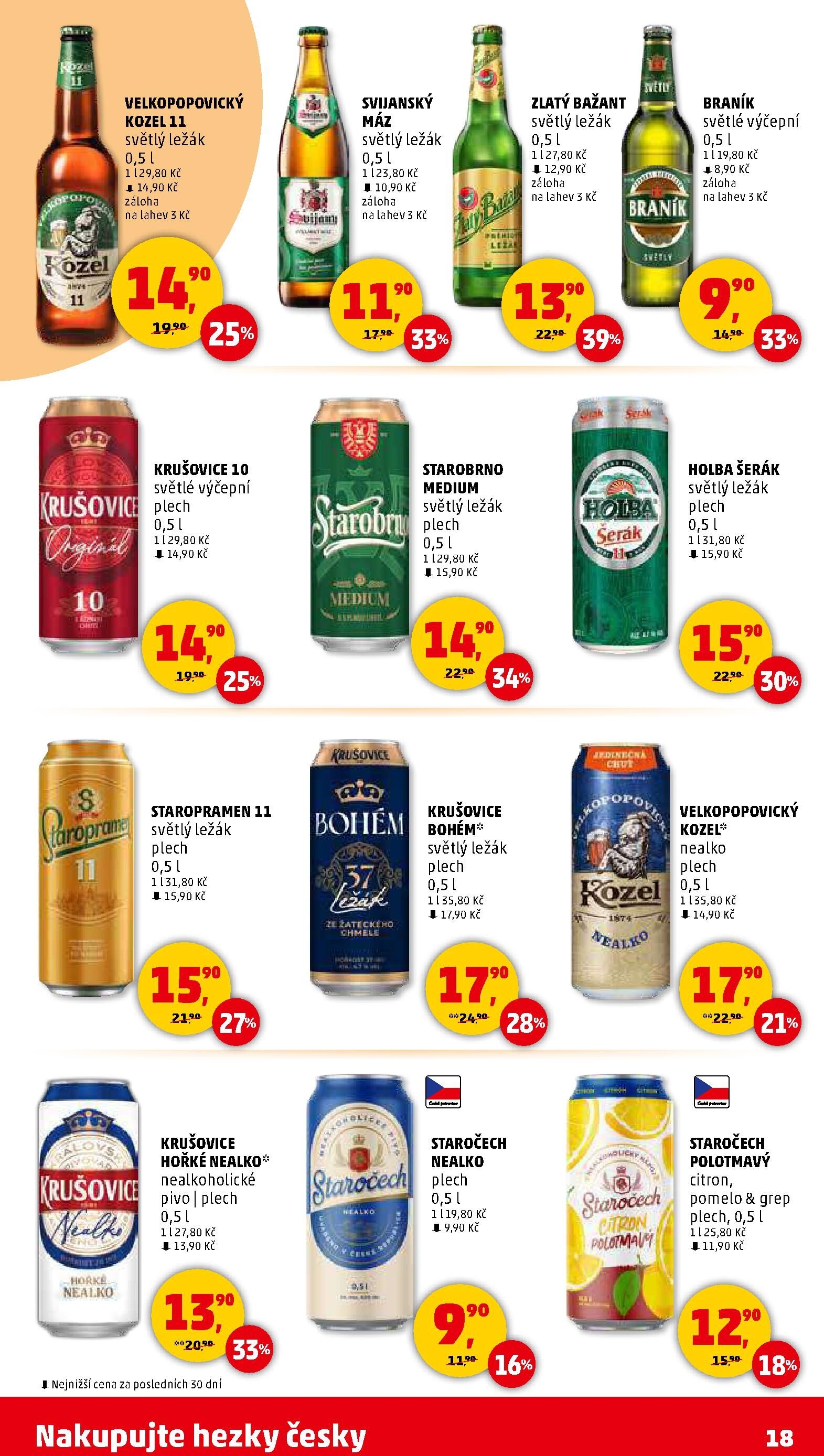 V letáku obchodu Penny Market najdete širokou nabídku kvalitních piv. Mezi nimi se objevují oblíbené značky jako Velkopopovický Kozel, Svijanský Máz, Zlatý Bažant a Braník.