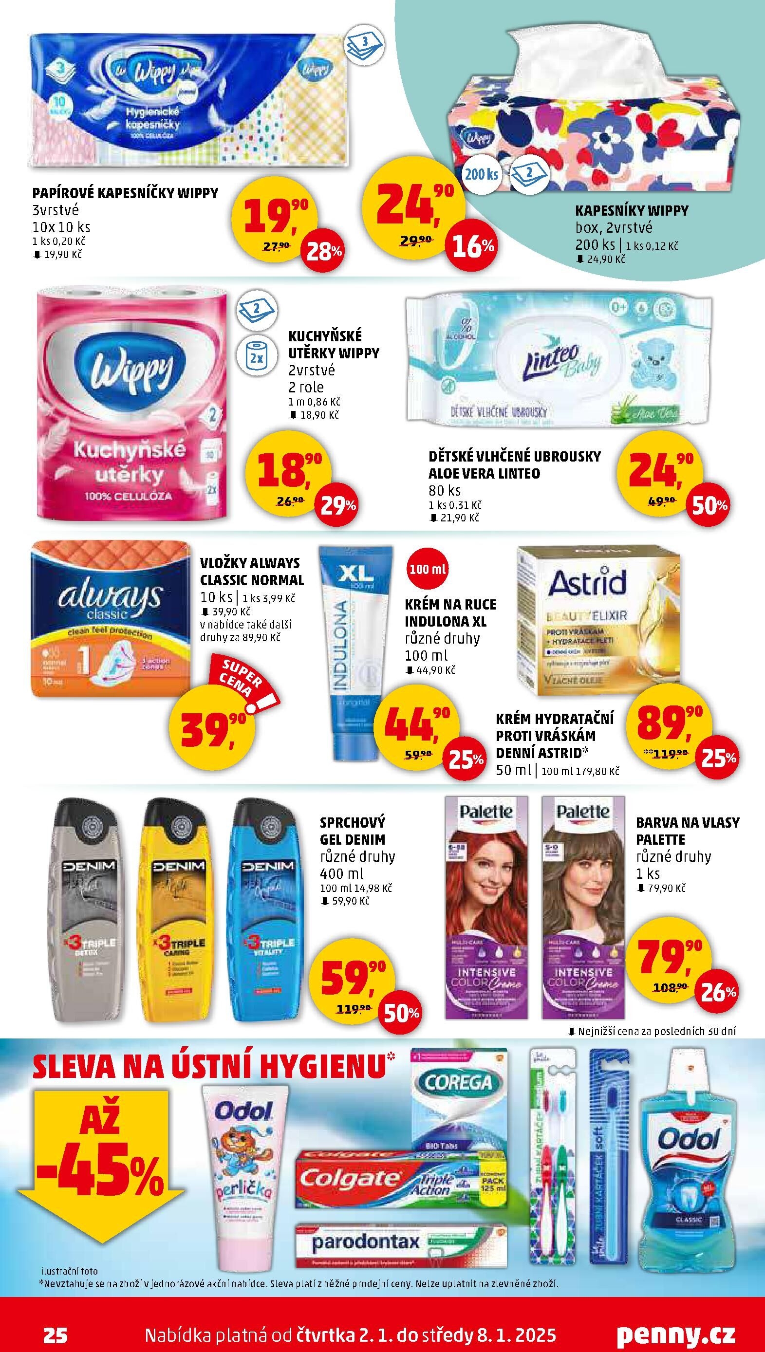 Pro milovníky sprchových gelů máme Denim v různých druzích za 59,90 Kč a barvy na vlasy Palette za 79,90 Kč. Akce platí od 2.1. do 8.1.2025. Navštivte penny.cz pro více informací!