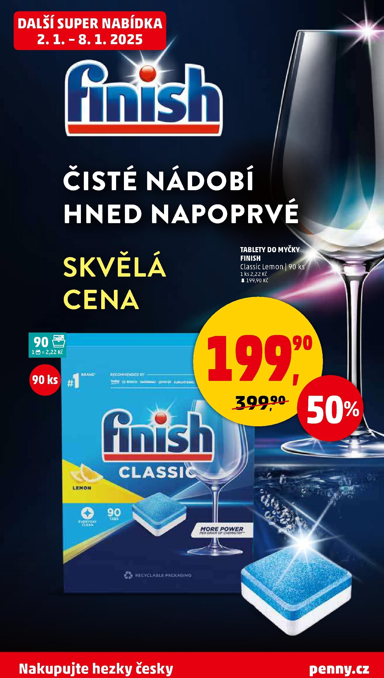 V letáku obchodu Penny Market na období od 2. 1. do 8. 1. 2025 najdete skvělou nabídku na tablety do myčky Finish Classic Lemon. Tyto tablety zajistí čisté nádobí hned napoprvé a nyní je můžete pořídit za výhodnou cenu 199,90 Kč za 90 ks, což vychází na pouhých 2,22 Kč za kus. Nezapomeňte nakupovat hezky česky a využijte této super nabídky!