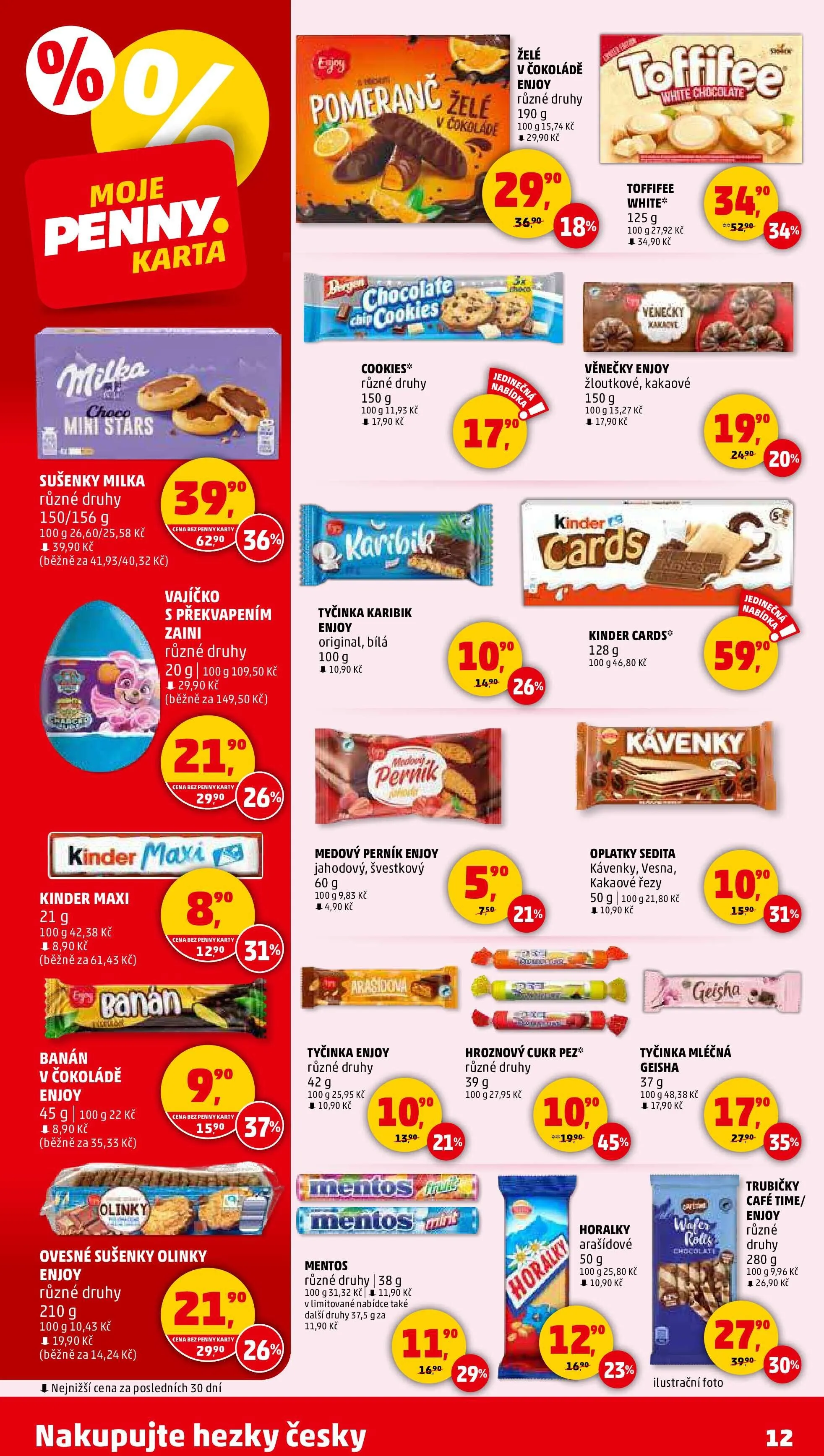 V letáku obchodu Penny Market najdete širokou nabídku sladkostí a pochutin. Mezi nimi jsou želé v čokoládě Enjoy, různé druhy sušenek Milka a medové perníky Enjoy s příchutěmi jahodovou a švestkovou. Nezapomeňte na oblíbené tyčinky Enjoy, včetně varianty Karibik a banánu v čokoládě.