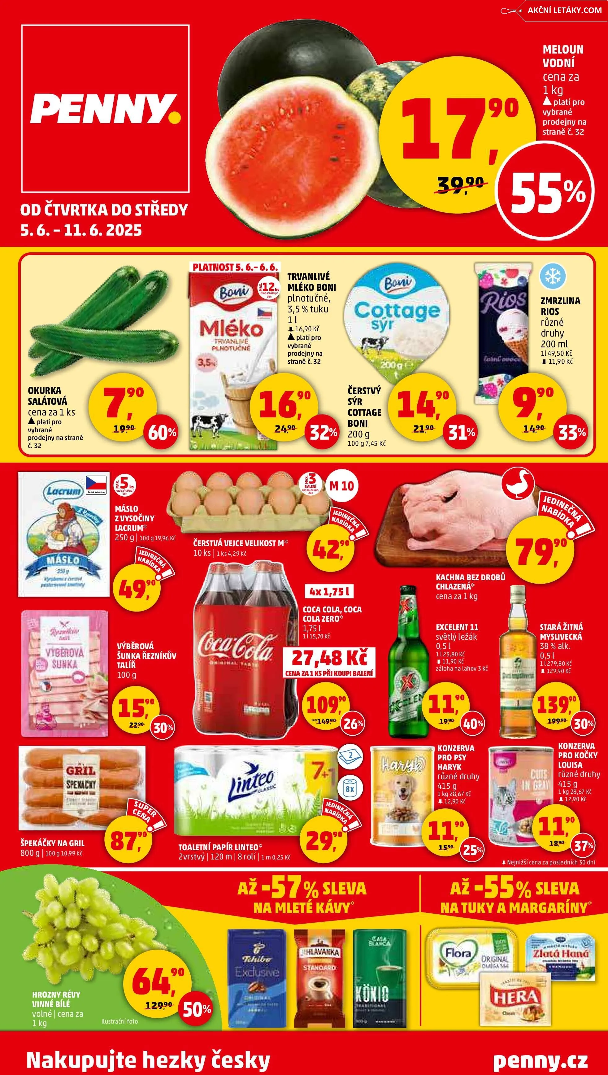 V letáku obchodu Penny Market od čtvrtka 5.6. do středy 11.6.2025 najdete širokou nabídku produktů za výhodné ceny.