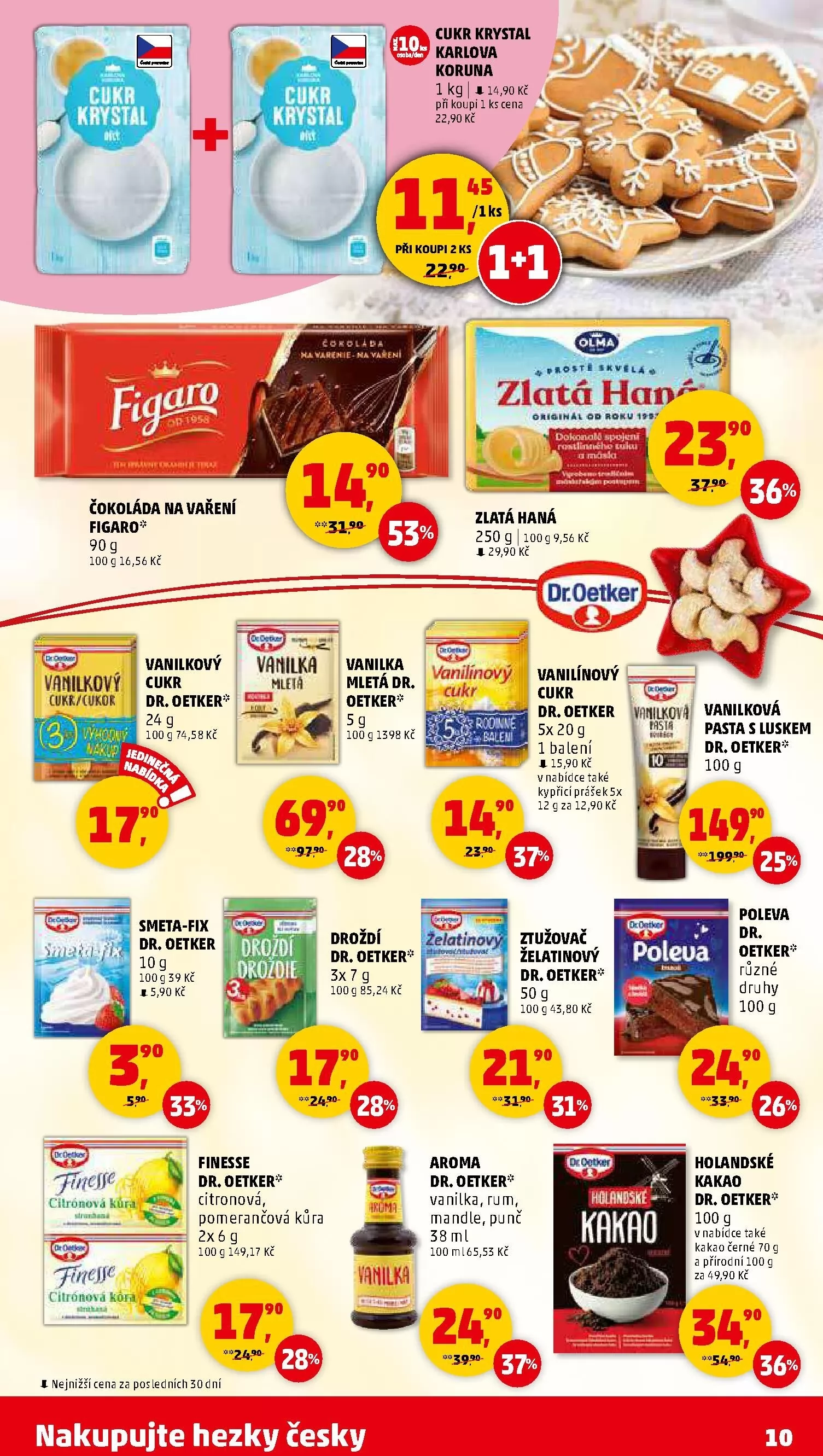 Značka Dr. Oetker nabízí různé produkty, jako je vanilkový cukr 24 g za 74,58 Kč, smeta-fix 10 g za 5,90 Kč a vanilková pasta s luskem 100 g. Nezapomeňte také na kypřicí prášek a ztužovač želatinový, které jsou v akci.