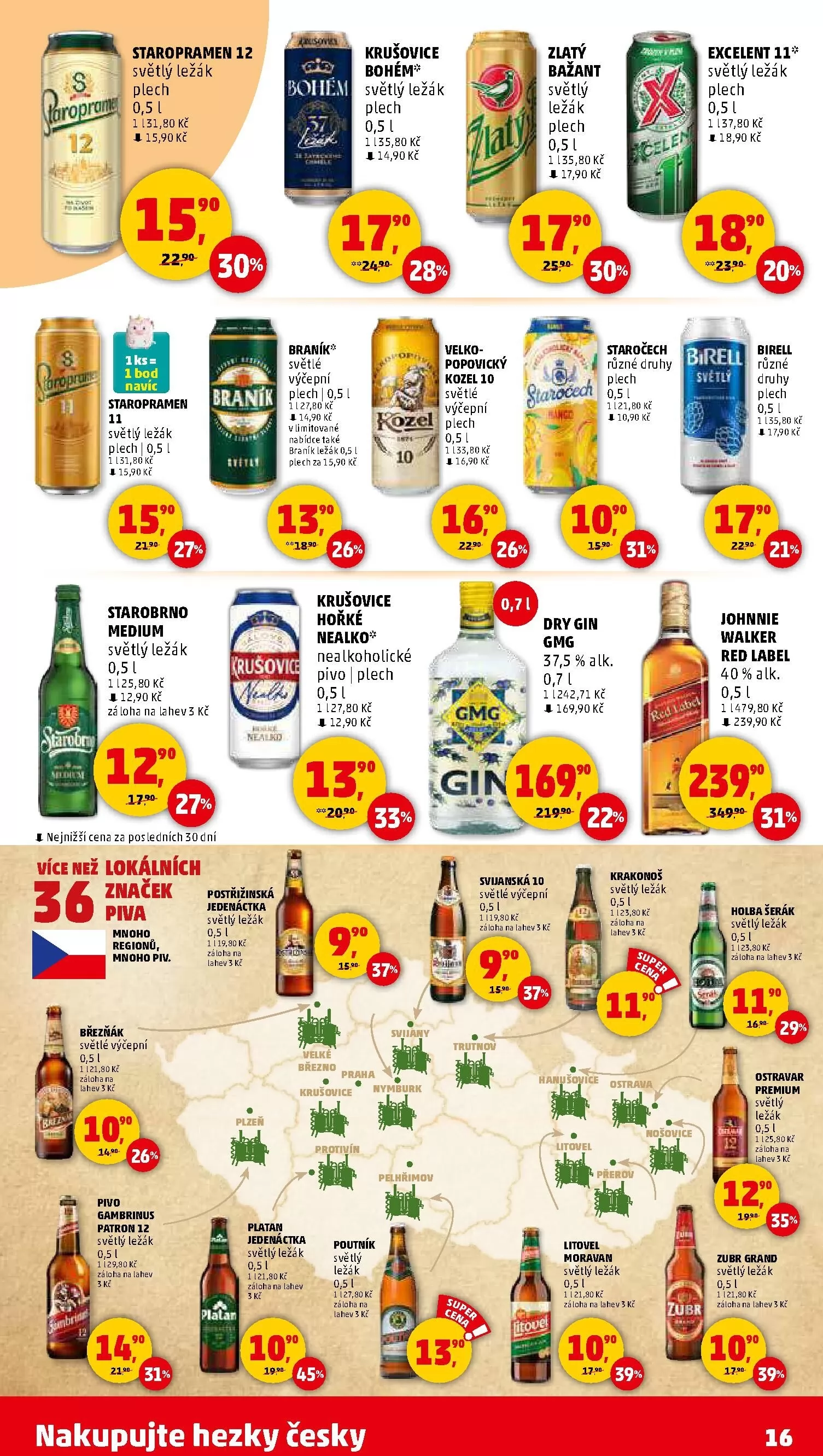Pokud preferujete nealkoholické pivo, Birell různé varianty jsou za 55,80 Kč za 1 l. Nezapomeňte také na Starobrno medium za 12,90 Kč s vratnou zálohou na lahev 3 Kč.