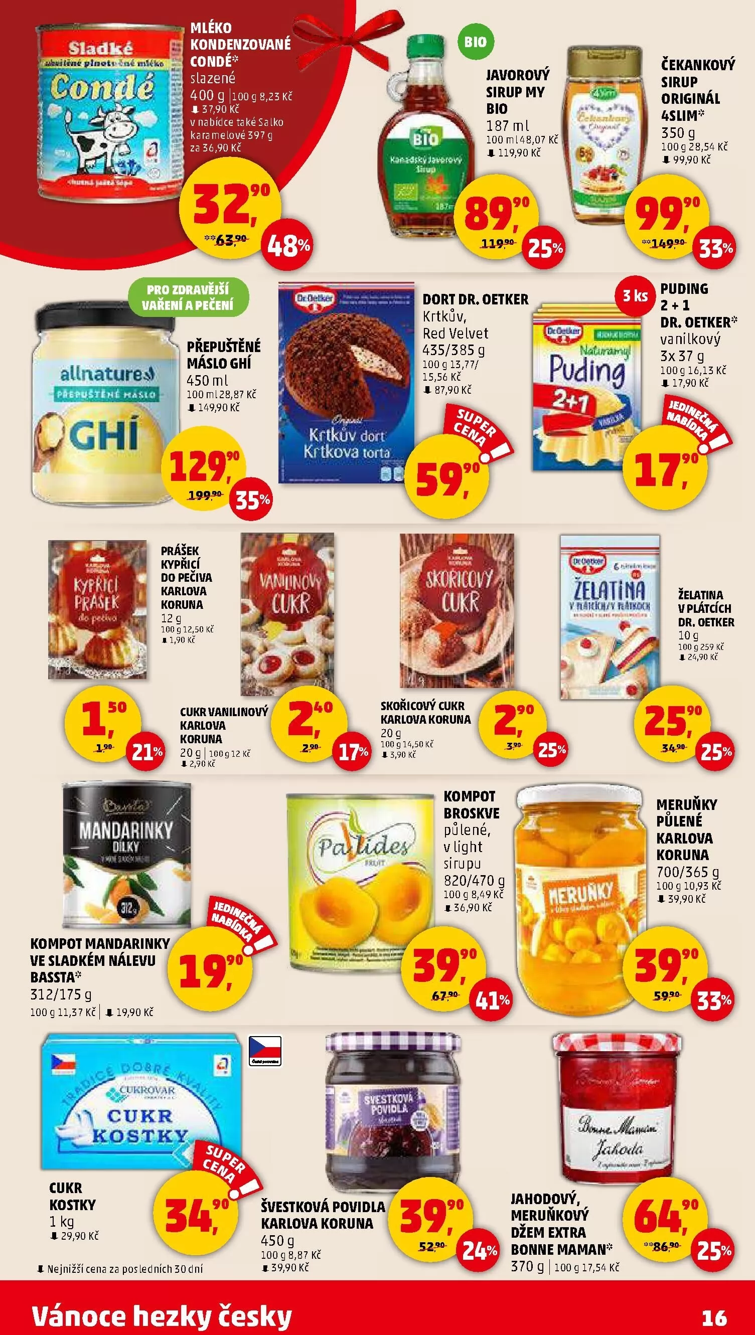 Dále nabízíme přepuštěné máslo ghí Allnatureš (450 ml) za 149,90 Kč a kypřicí prášek Karlova koruna (12 g) za 1,90 Kč. Nezapomeňte také na cukr vanilinový (20 g) za 2,90 Kč a dort Dr. Oetker Krtkův (435 g) za 87,90 Kč.