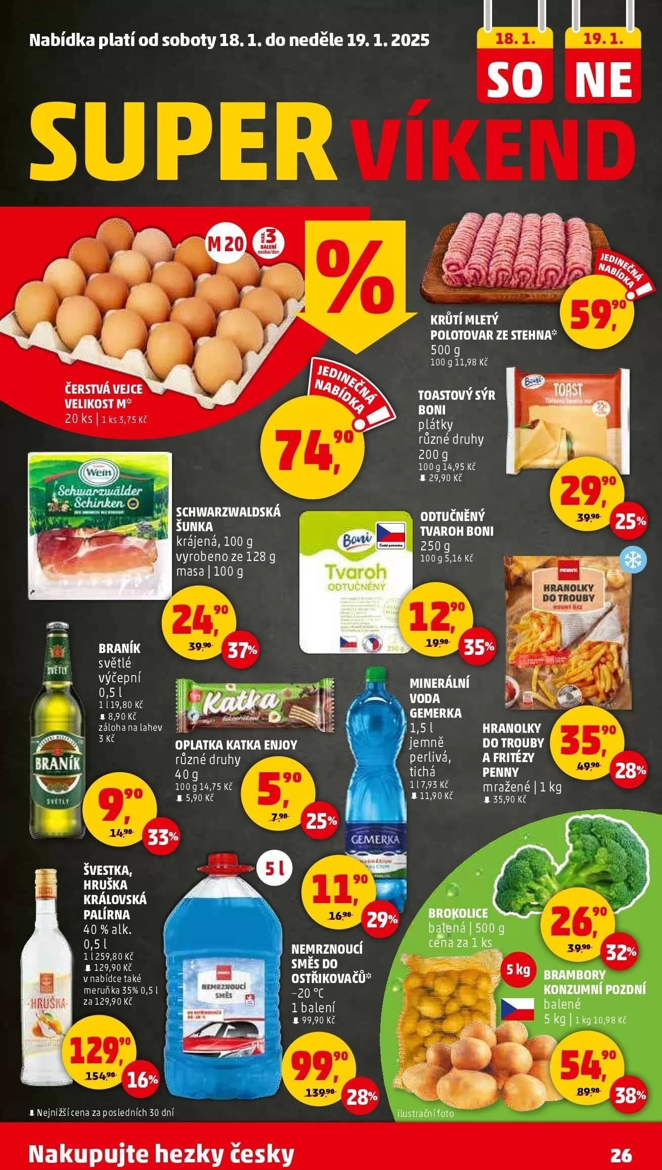 V nabídce najdete také brambory za 10,98 Kč (5 kg) a nemrznoucí ostřikovače za 99,90 Kč. Nakupujte hezky česky a využijte skvělé akce!