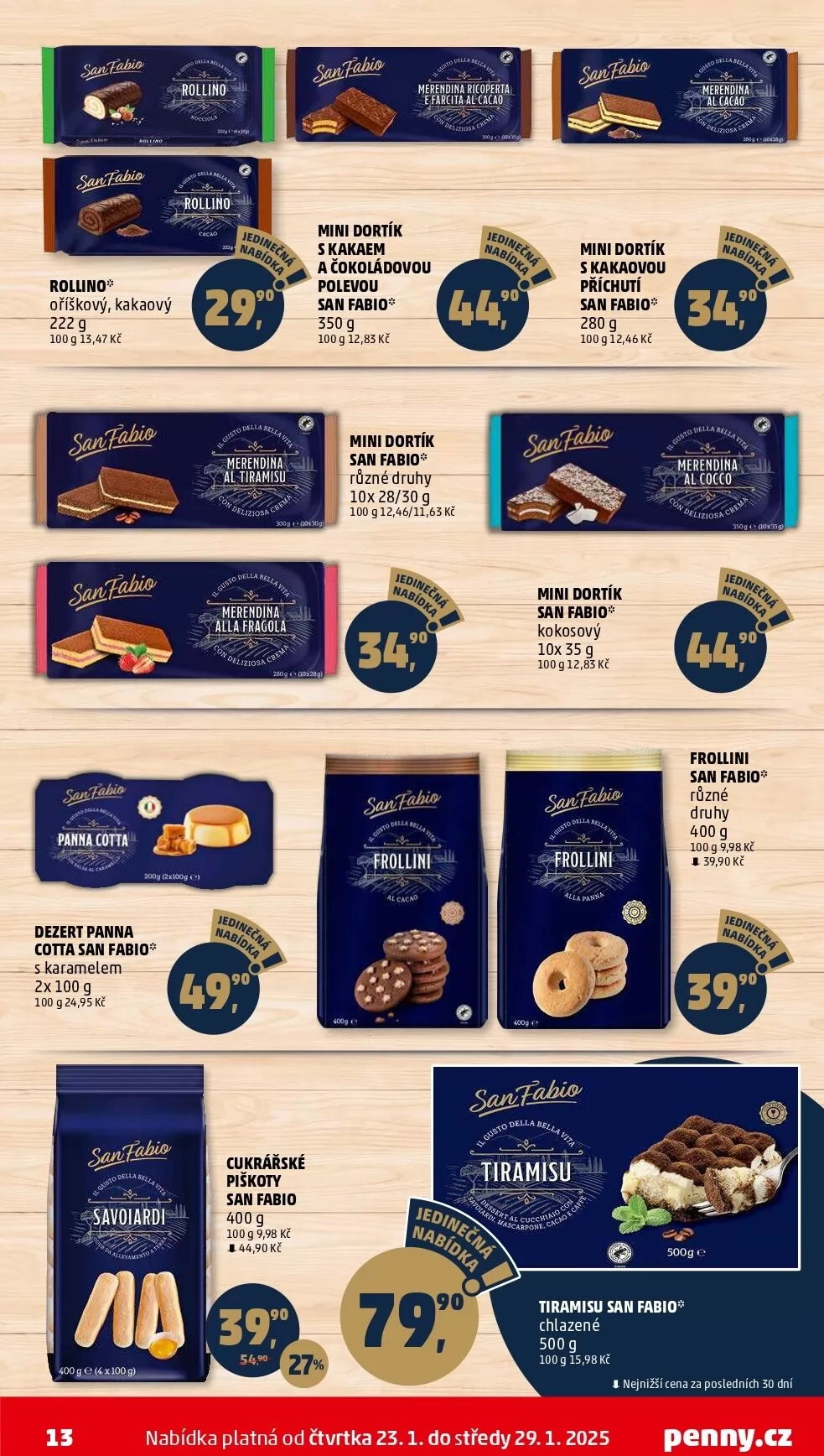 Nezapomeňte také na chlazené tiramisu San Fabio, které si můžete zakoupit za 15,98 Kč za 100 g. Tato nabídka platí od čtvrtka 23. ledna do středy 29. ledna 2025. Navštivte penny.cz pro více informací!