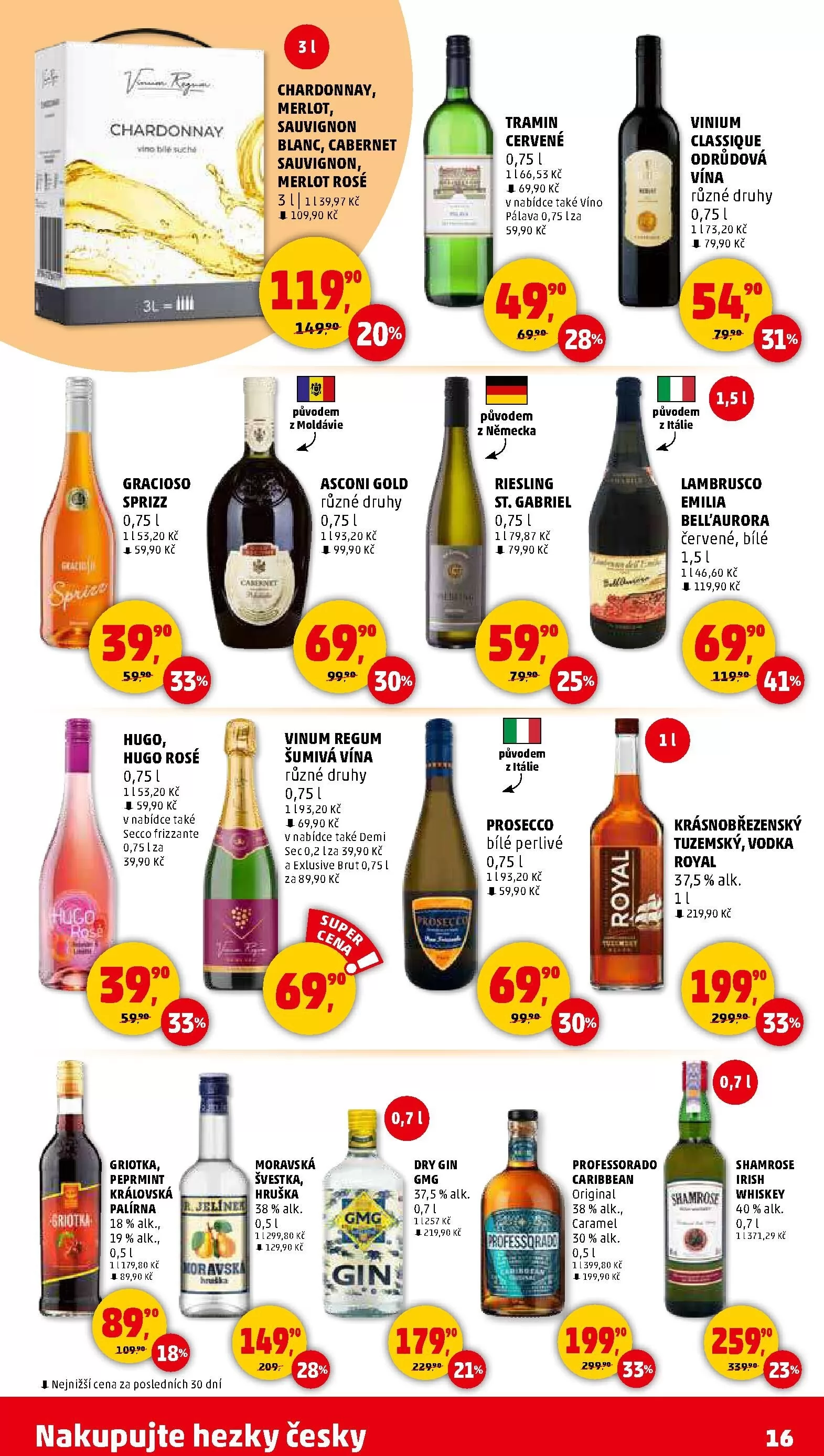 V letáku obchodu Penny Market najdete širokou nabídku vín a lihovin. Mezi oblíbené produkty patří Chardonnay a Gracioso Sprizz za 55,20 Kč. Dále nabízíme Hugo a Hugo Rosé, také za 55,20 Kč. V nabídce jsou i šumivá vína Vinum Regum a Asconi Gold, které můžete zakoupit za 69,90 Kč a 99,90 Kč.