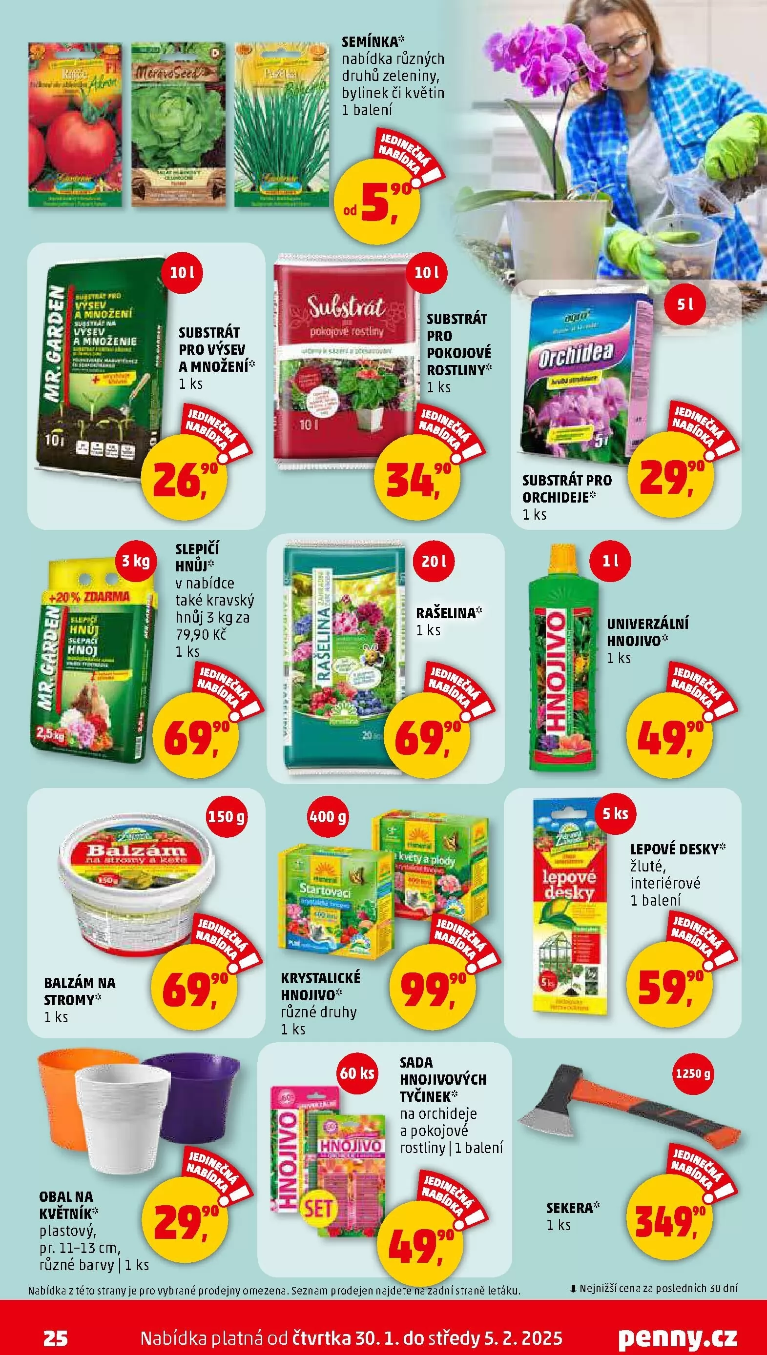 V nabídce naleznete také slepičí a kravský hnůj, který je skvělým přírodním hnojivem. Akce platí od čtvrtka 30.1. do středy 5.2.2025, a to pouze v vybraných prodejnách. Nepropásněte tuto skvělou příležitost!