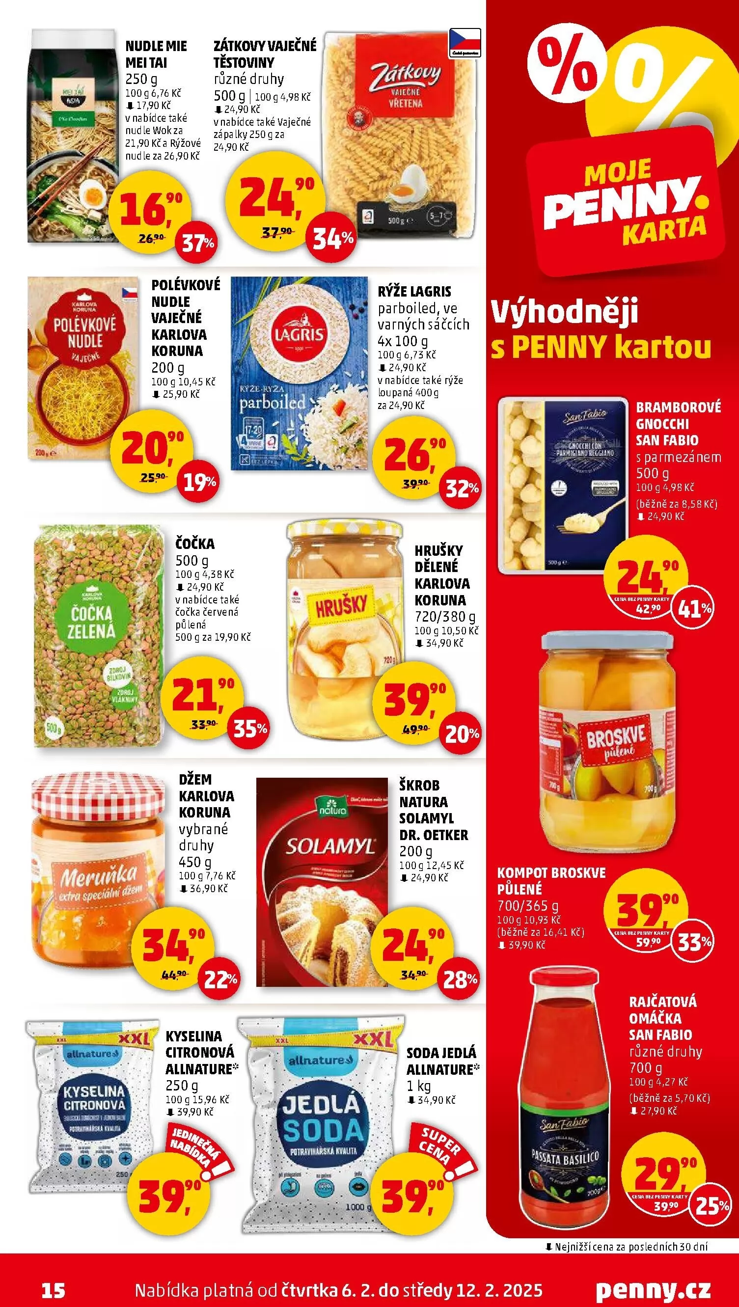 Nezapomeňte také na džem Karlova koruna za 56,90 Kč za 450 g a rajčatovou omáčku San Fabio za 39,90 Kč za 700 g. Všechny produkty jsou k dispozici od čtvrtka 6.2. do středy 12.2.2025. Využijte výhodné ceny s Penny kartou!