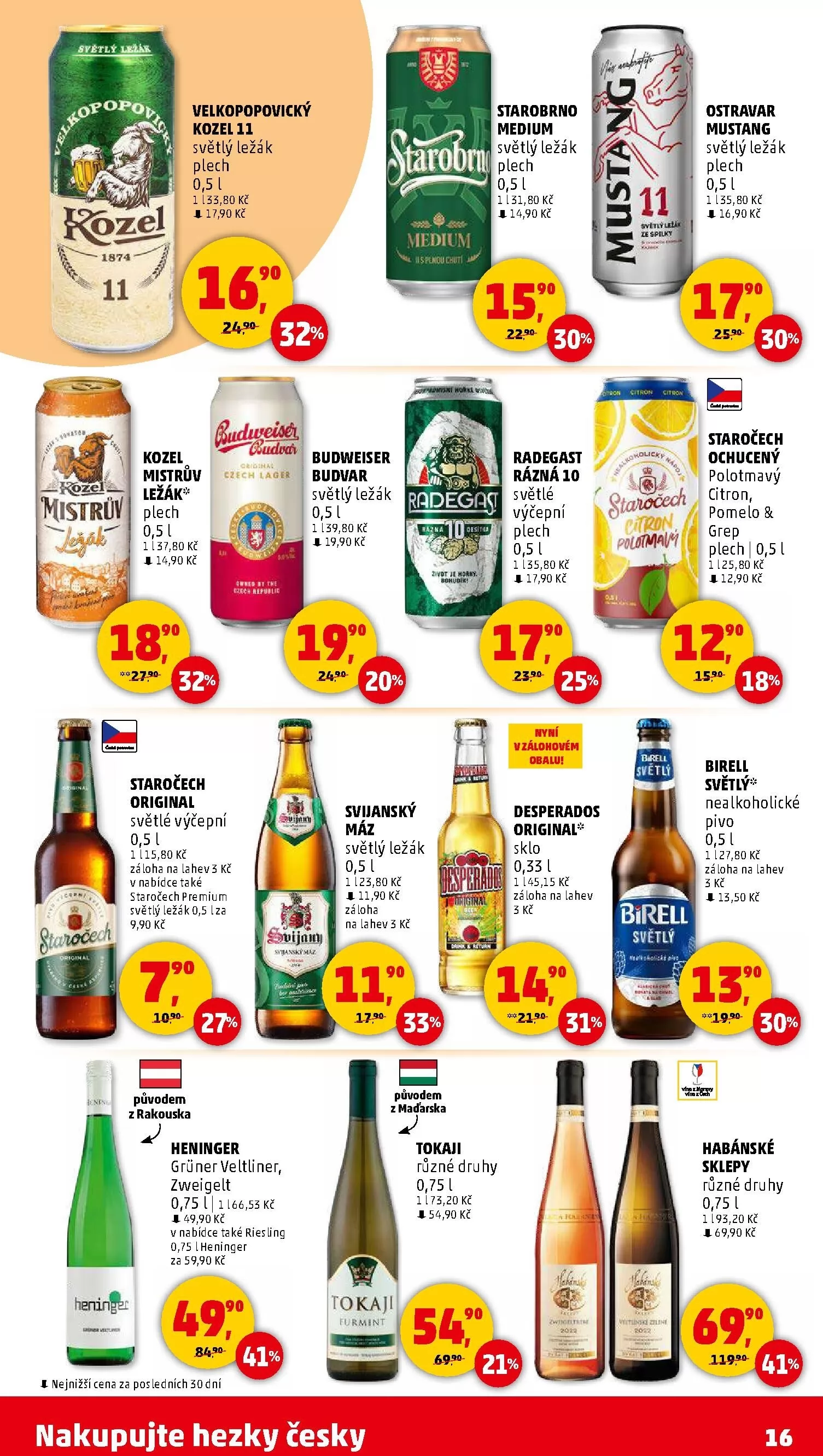 V letáku obchodu Penny Market najdete širokou nabídku kvalitních piv a dalších nápojů. Mezi oblíbené produkty patří Velkopopovický Kozel světlý ležák za 17,90 Kč, nebo Kozel Mistrův ležák za 14,90 Kč. Nezapomeňte také na Budweiser Budvar a Svijanský Máz, které jsou k dostání za 19,90 Kč a 11,90 Kč.