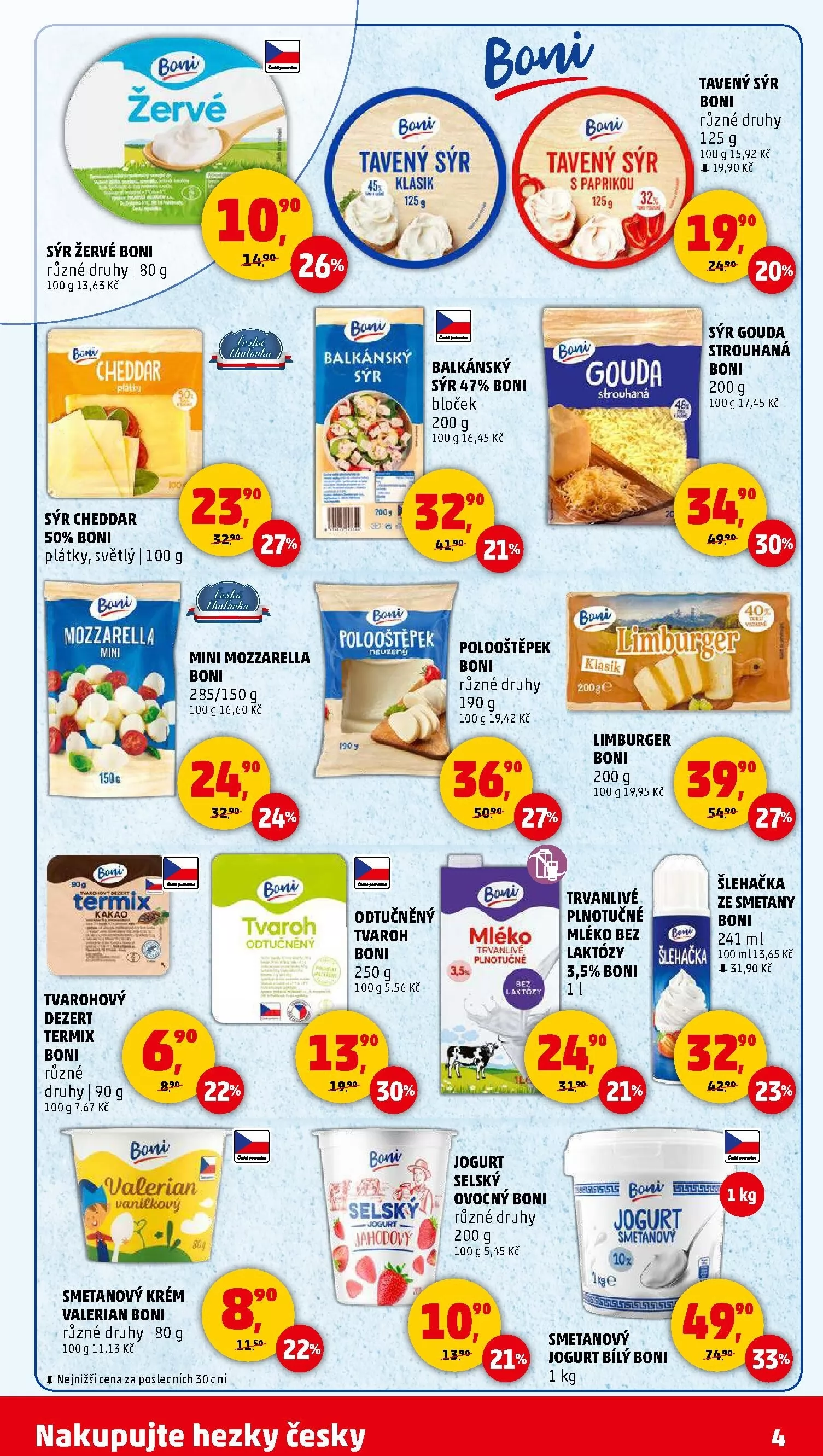 V letáku obchodu Penny Market najdete širokou nabídku mléčných výrobků. Mezi nimi se objevují různé druhy sýra, jako je sýr žervé Boni (80 g za 100 Kč) a tavený sýr s paprikou (125 g za 32 Kč). Dále si můžete vybrat balkánský sýr Boni (100 g za 16,45 Kč) nebo strouhanou goudu (100 g za 17,45 Kč).