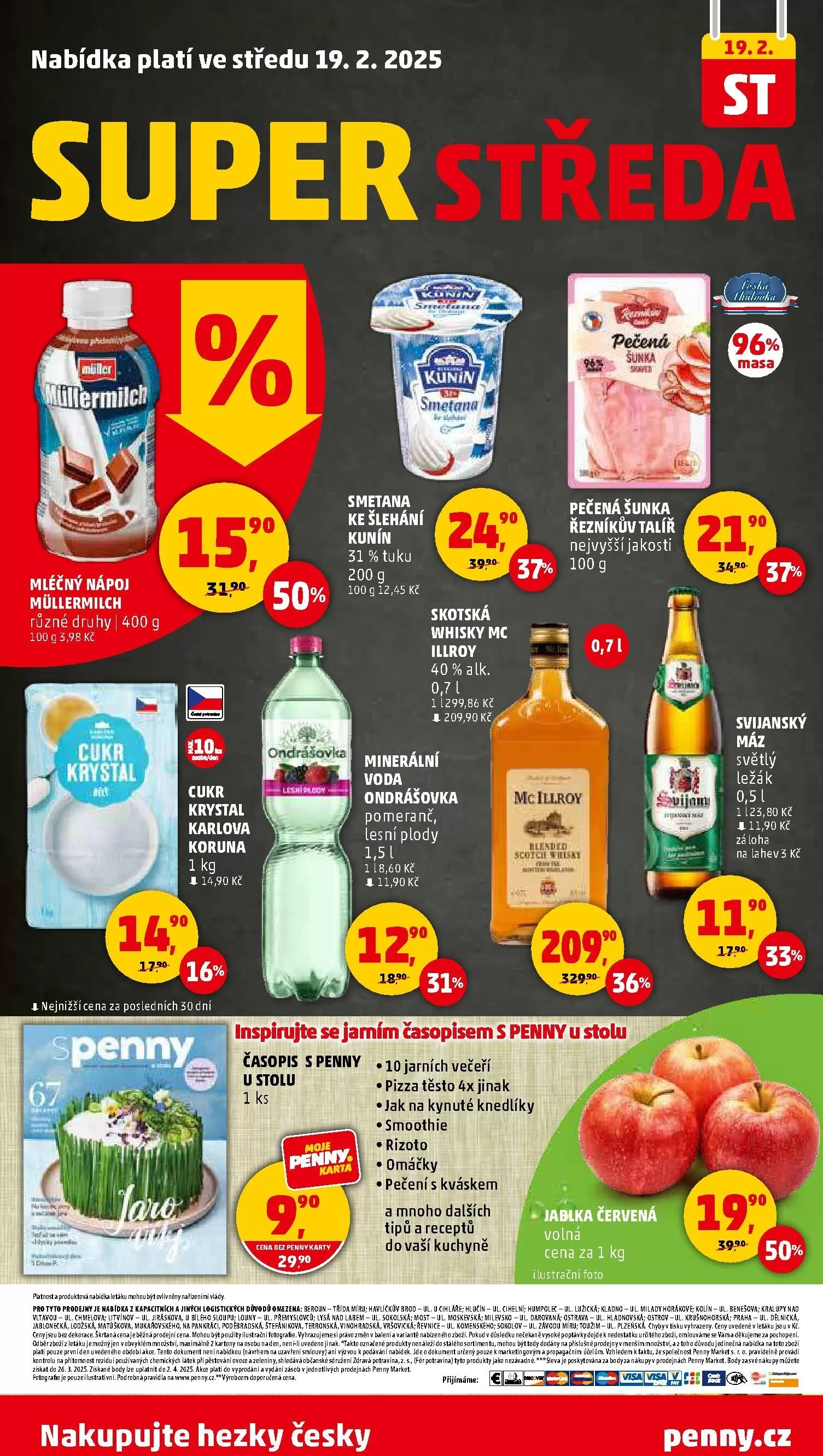 V letáku obchodu Penny Market na středu 19. února 2025 najdete širokou nabídku produktů za výhodné ceny. Mezi nimi je mléčný nápoj Müllermilch různých druhů za 3,98 Kč za 100 g, krystalový cukr za 14,90 Kč za 1 kg a smetana ke šlehání Kunín s 31 % tuku za 12,45 Kč za 100 g.
