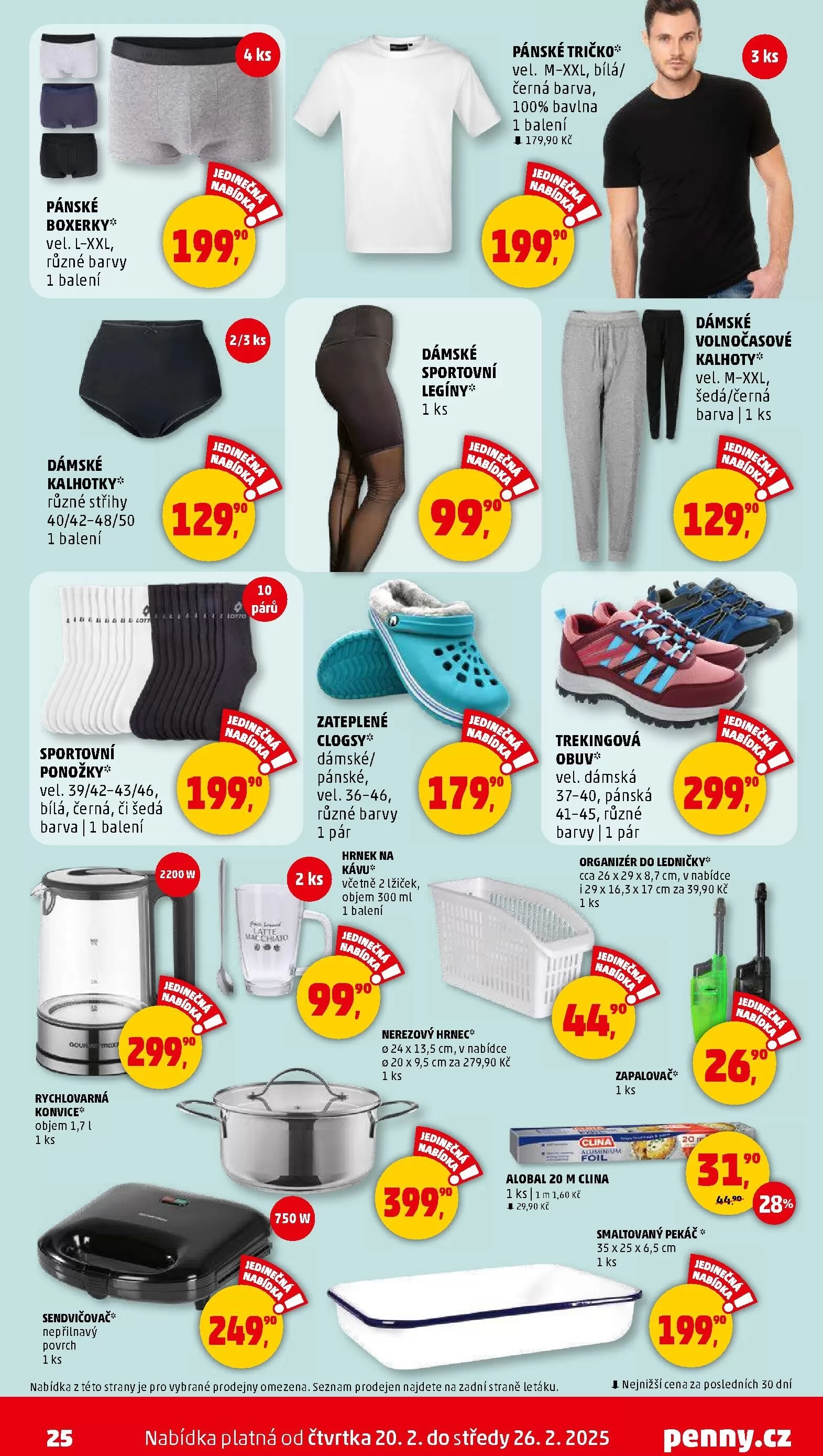 V nabídce jsou také trekingové obuvi pro dámy a pány, volnočasové kalhoty, zateplené clogsy, hrnek na kávu s lžičkami, nerezový hrnec a organizér do ledničky.