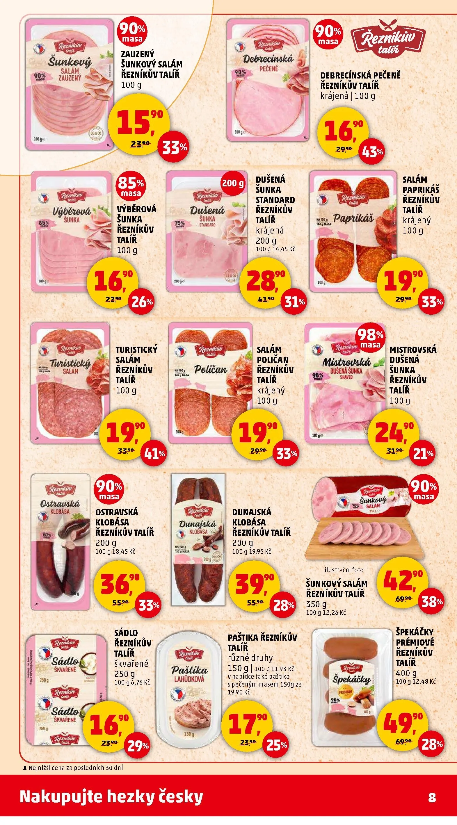 V letáku obchodu Penny Market najdete širokou nabídku kvalitních masných výrobků. Mezi nimi se objevují různé druhy šunkového salámu, jako je zauzený šunkový salám a výběrová šunka, které jsou k dostání v krájené formě. Dále si můžete vybrat z turistického salámu, debrecínské pečeně a ostravské klobásy.