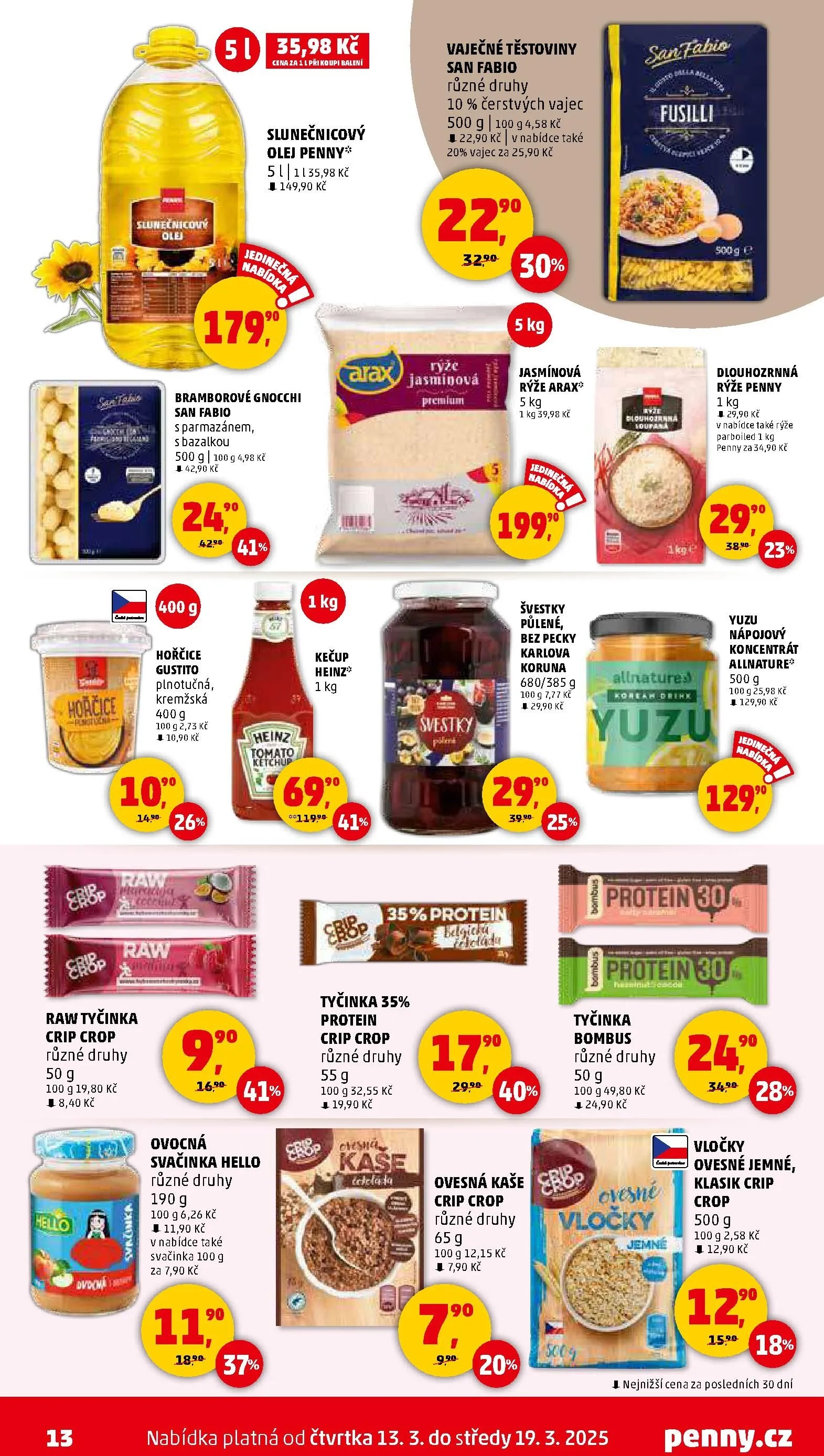 V nabídce najdete také proteinové tyčinky a ovesné kaše různých druhů. Akce platí od čtvrtka 13. 3. do středy 19. 3. 2025. Navštivte penny.cz pro více informací!