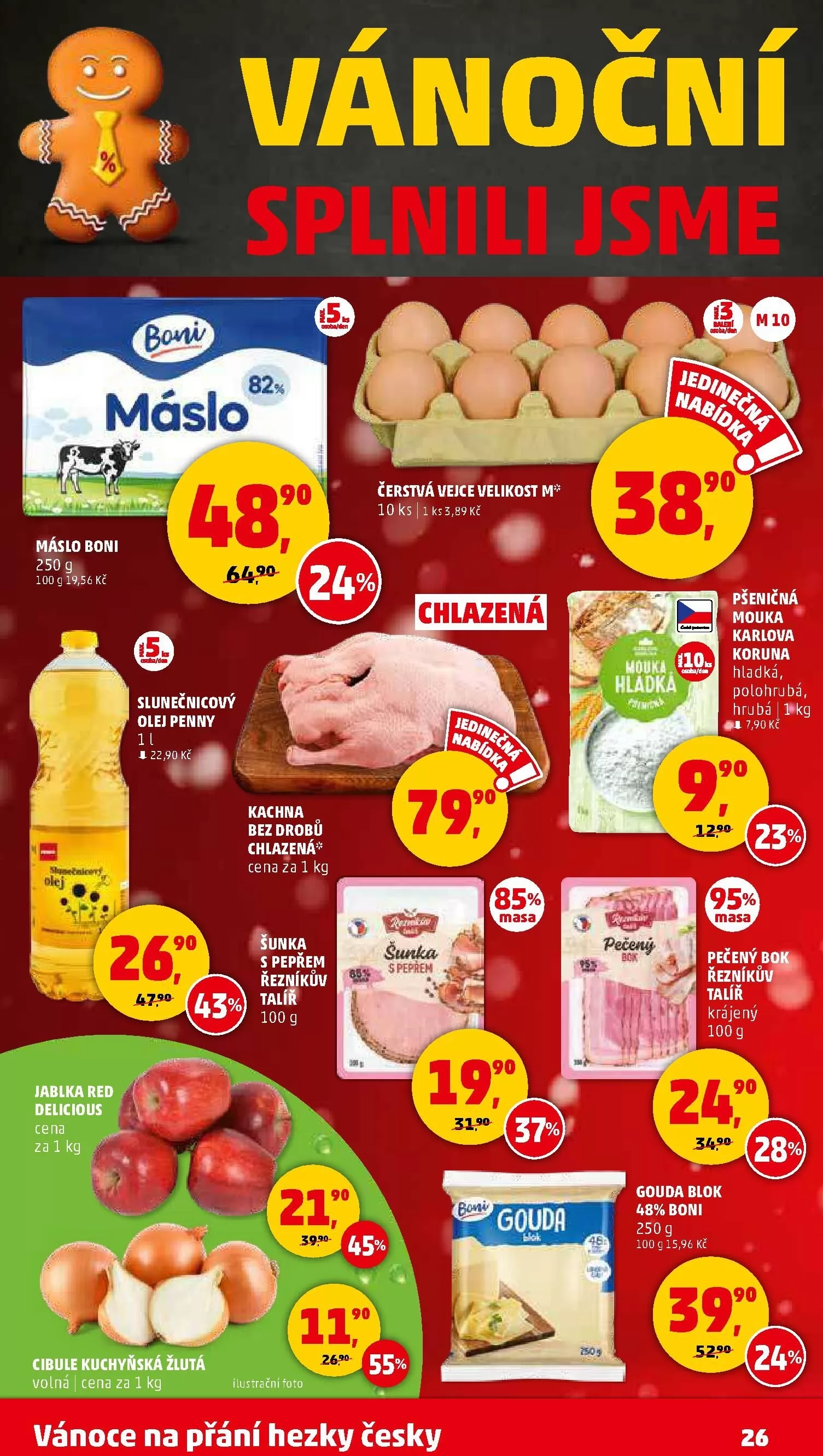 Máslo Boni 100 g za 19,56 Kč a čerstvá vejce velikosti M (10 ks) za 39 Kč (1 ks 3,89 Kč) jsou ideální pro přípravu vánočních pokrmů.