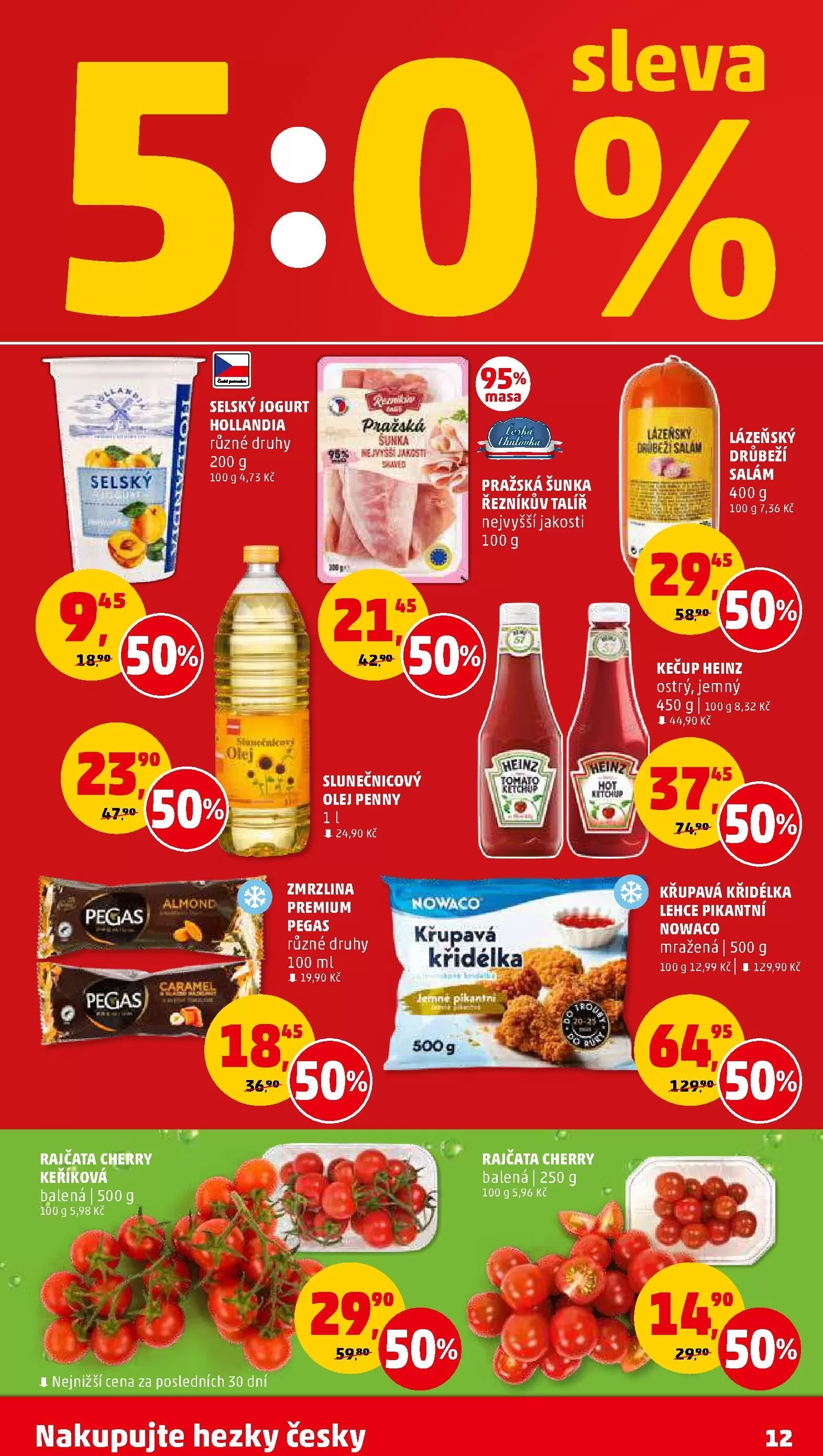 sleva selský jogurt hollandia různé druhy 200 g 100 g 4,73 kč selský 18,90 90 masa pražská šunka řezníkův talíř nejvyšší jakosti 100 g 500/0 slunečnicový olej penny 24,90 kč pegas rajčata cherry keříi