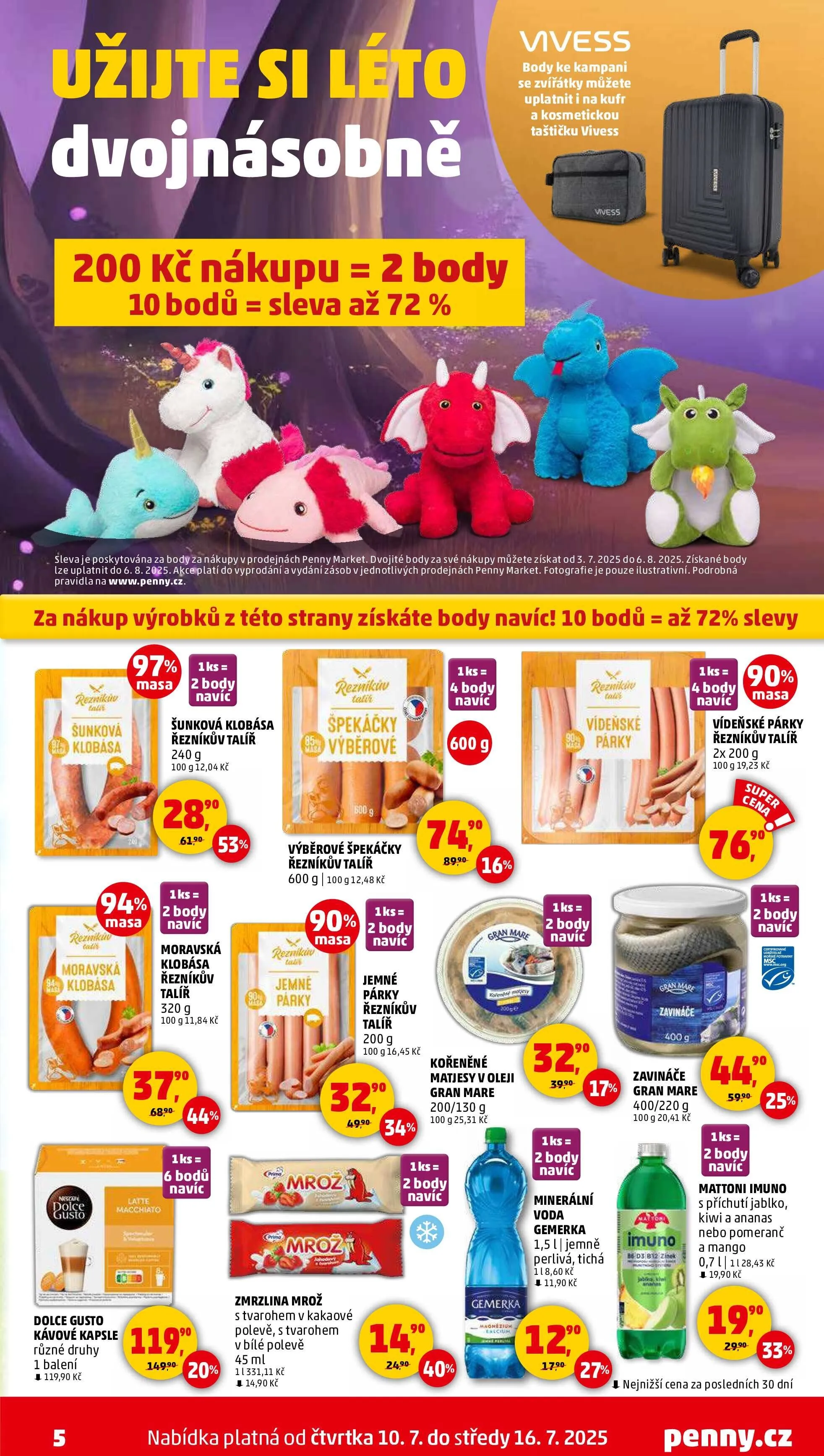 Dále si můžete vybrat z minerální vody Gemerka, zavináčů Gran Mare nebo kávových kapslí Dolce Gusto, které také přinášejí body navíc. Nezapomeňte, že nabídka platí od 10.7. do 16.7.2025 a je časově omezená. Pro více informací navštivte www.penny.cz.