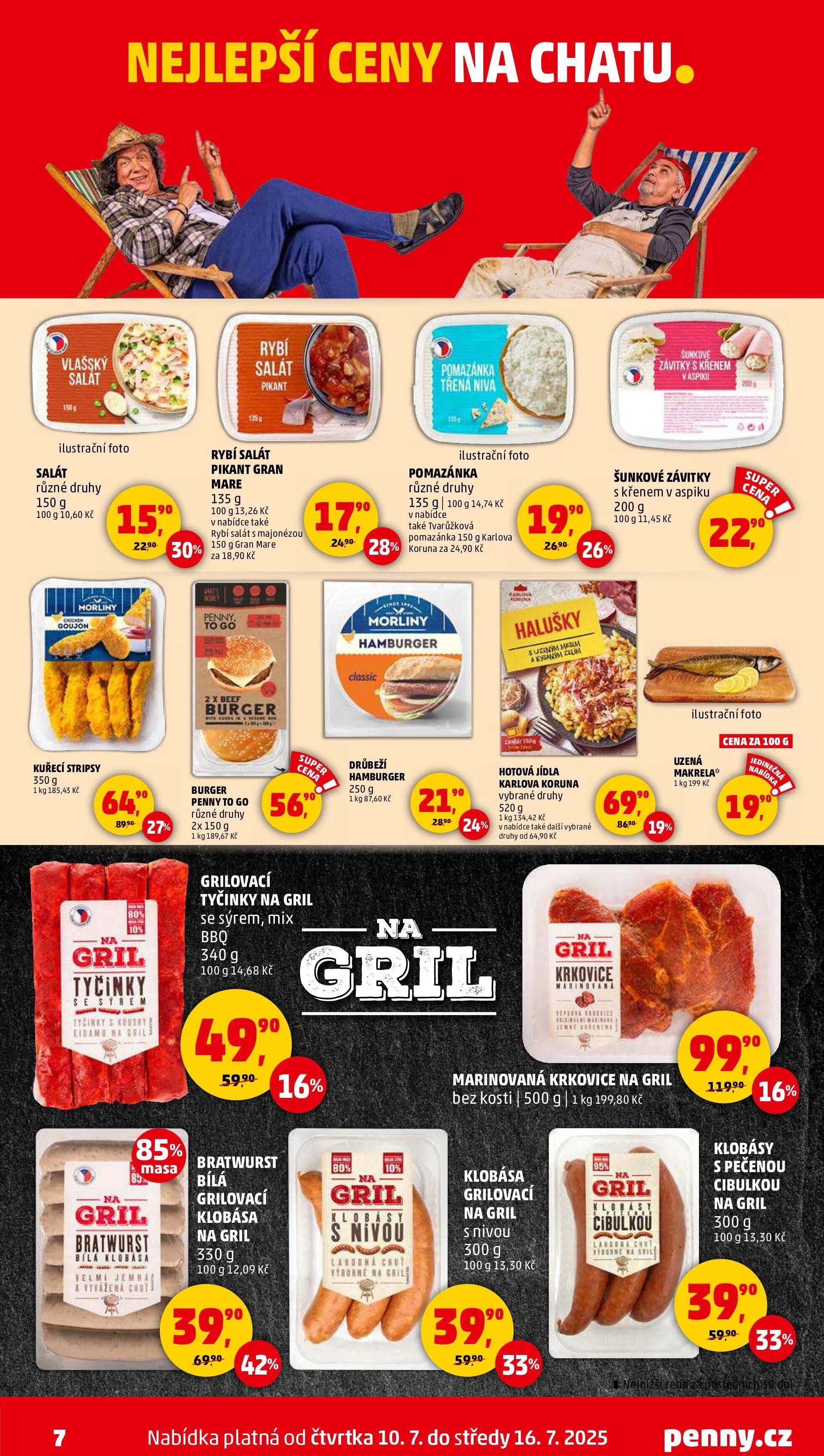 V letáku obchodu Penny Market najdete skvělé nabídky na produkty ideální pro vaši chatu. Nabízíme různé druhy salátů, jako je rybí salát pikant za 13,26 Kč/100 g a horliky gouson stripsy za 185,45 Kč/kg.