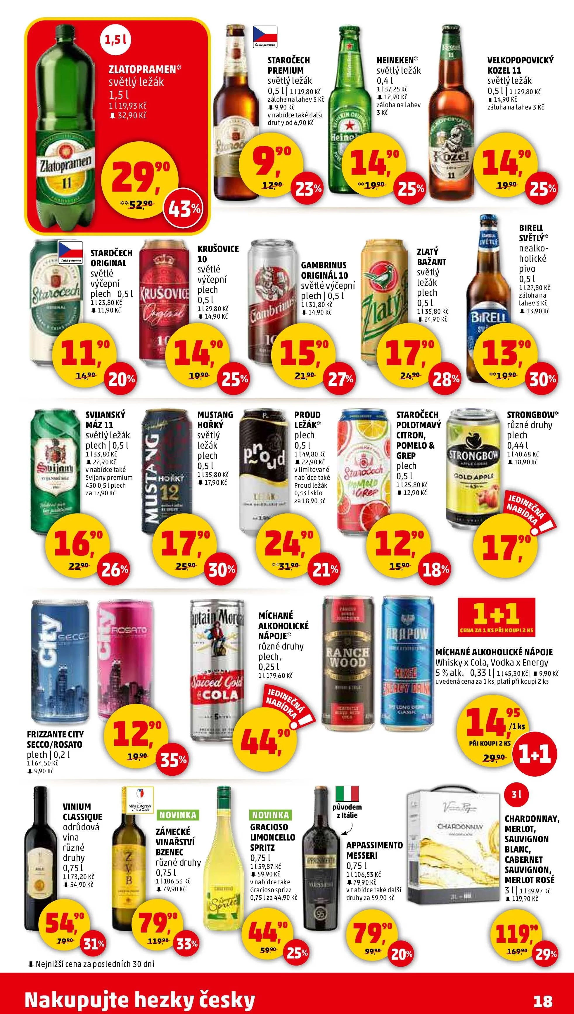 Nezapomeňte také na Velkopopovického Kozla za 14,90 Kč a Birell, nealkoholické pivo, za 13,90 Kč.