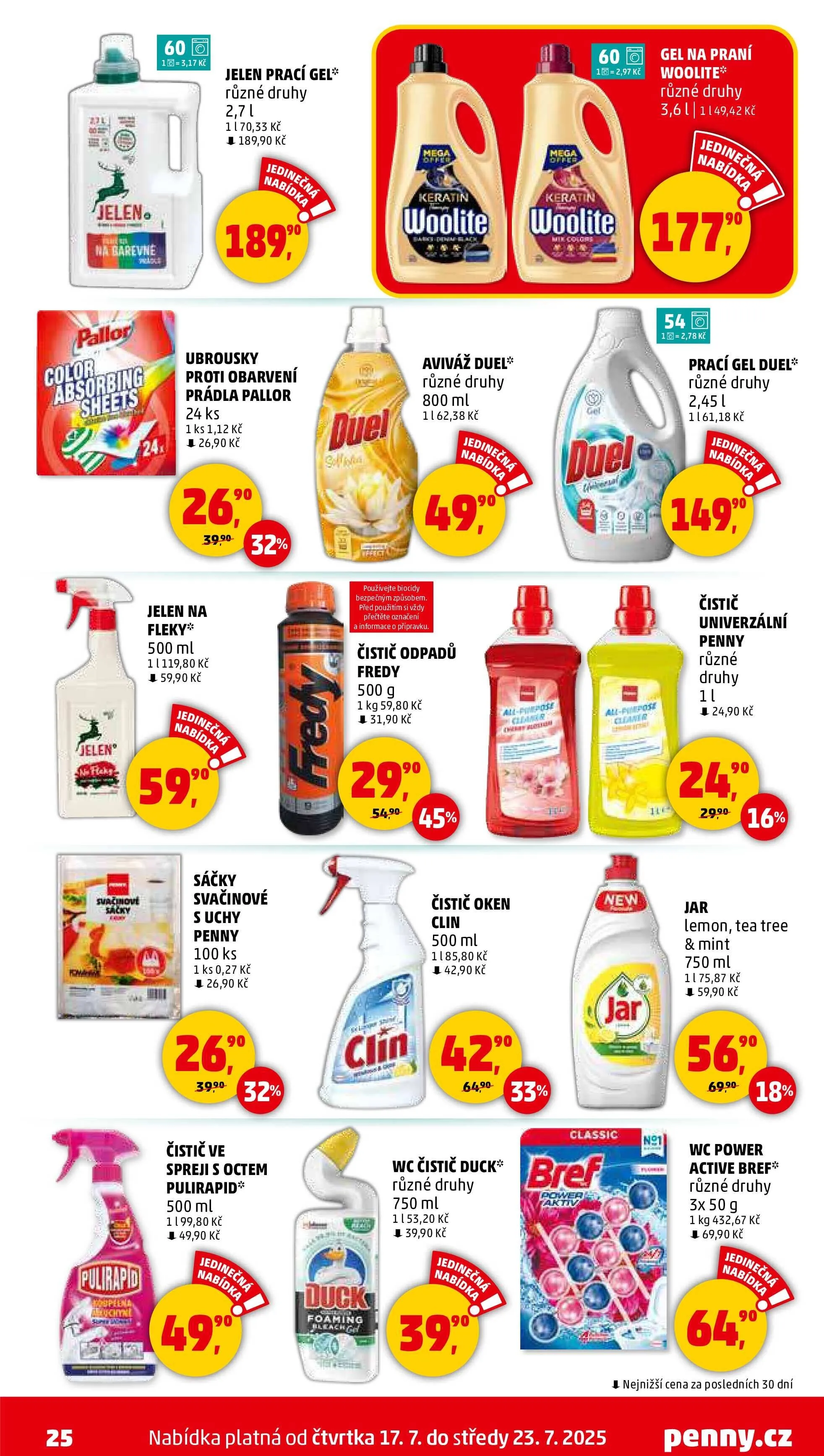 V nabídce najdete i aviváž Duel a univerzální čistič Penny, oba za výhodné ceny. Akce platí od 17.7. do 23.7.2025. Navštivte penny.cz pro více informací.